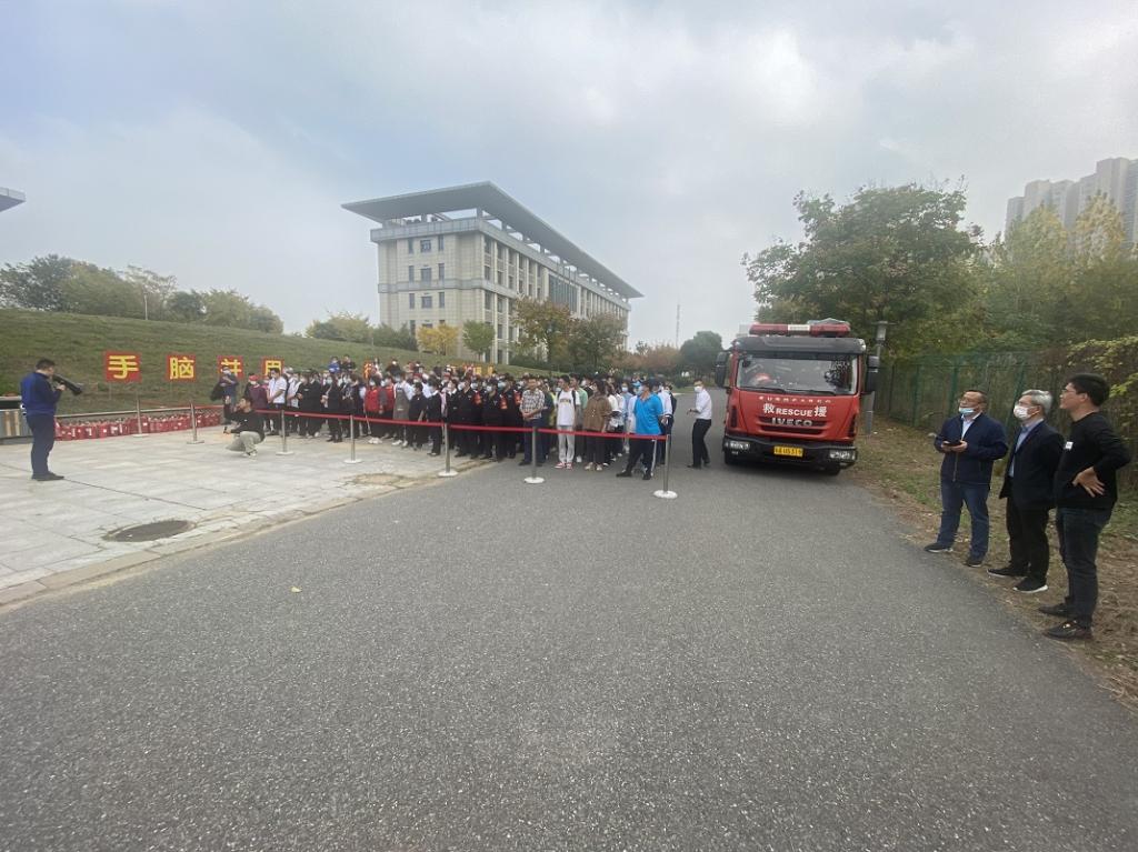 为增强全校师生员工的消防安全意识,提高基层消防业务骨干的应急处置能力和消防器材使用技能,根据学校《关于切实做好校园火灾防范工作的通知》要求,11月11日下午,安全保卫处邀请扬子江隧道消防救援中队来校,共同举行消防灭火培训和演练。学校党委副书记、副院长陆勇到场指导,安全保卫处工作人员,各部门单位义务消防员、学生护校队员、保安队员,各食堂、物业等驻校企业人员约200人参加。