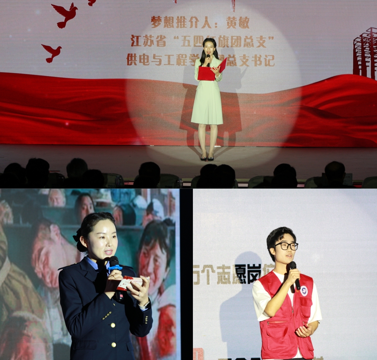 本次梦想公开课邀请到4位90后毕业生和4位00后在校生作为主讲嘉宾,围绕4个篇章进行时空对话,同时,还邀请到4位梦想推介人为大家推介青春梦想。在第一篇章“请党放心 强国有我”中,我校2013届运输管理学院毕业生、南京市江宁区城市管理局副科长潘云峰和江苏省“最美职校生”、南京非亲血缘年纪最小的造血干细胞捐献志愿者祁振鹏同学结合自身经历,号召大家“以实现中华民族伟大复兴为己任,增强做中国人的志气、骨气、底气,不负时代,不负韶华,不负党和人民的殷切希望”。在第二篇章“雷锋精神 永放光芒”中,我校2011届轨道交通系毕业生、南京站“158”雷锋服务站第四代90后接班人、南京站南京南车间客运员预备工班长吴晓娟和“全国铁路优秀志愿者”朱心雨同学讲述了自己在车站的服务经历,诠释了新时代雷锋精神。在第三篇章“创新创业 激发动能”中,我2016届建筑与艺术设计学院毕业生、南铁资本(江苏)有限公司董事长吴斌和第八届中国国际“互联网+”大学生创新创业大赛全国银奖获奖项目团队成员陈亭旭讲述了自己投身创新创业的经历,鼓舞大家昂首挺胸投入到“大众创业、万众创新”的大潮中,传承科学家精神,营造创新文化,用自身的热情和智慧创造更好的未来。在第四篇章“涵养匠心 提高匠技”中,2013届供电与工程学院毕业生、“火车头奖章”获得者、中国铁路南昌局鹰潭供电车间技术员高二好和江苏省职业技能大赛高职电子与信息类5G全网建设技术项目一等奖第一名获奖团队队长周家昕同学讲述了在技能成才、技能报国之路上奋勇前行的青春故事,他们分享了自己在勤学苦练中成就技艺的心得体会,诠释了“匠心匠技”的真谛。