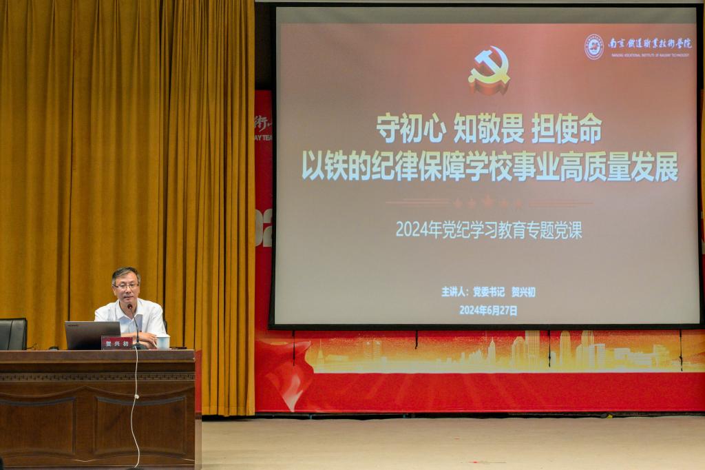 贺兴初为全体党员讲授党纪学习教育专题党课《守初心 知敬畏 担使命以铁的纪律保障学校事业高质量发展》。贺兴初在专题党课中回顾了自2013年以来,中央先后组织开展的七次集中教育活动,并提出要在深学细悟中铭“纪”于心、要在心存敬畏中守“纪”于行、要在严管厚爱中执“纪”于责等三点体会。希望全校党员干部,要守底线、强作风、创业绩,铸牢党纪之魂,绷紧纪律之弦,扛起担当之责,以高度的政治责任感和强烈的事业心,坚持不懈用习近平新时代中国特色社会主义思想凝心铸魂,坚决扛牢全面从严治党政治责任和推动学校事业高质量发展的主体责任,求真务实、真抓实干,奋力谱写学校事业高质量发展的新篇章。