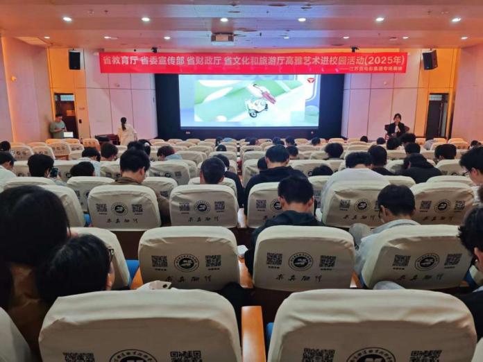 2025年10月29日,由省教育厅、省委宣传部、省财政厅、省文化和旅游厅联合主办的“高雅艺术进校园”活动之江苏省电影集团专场展映,在南京铁道职业技术学院图书馆报告厅成功举办。本次活动为师生带来了《只此青绿》与《铁道英雄》两部优秀影片,吸引了近三百名师生共同观赏。