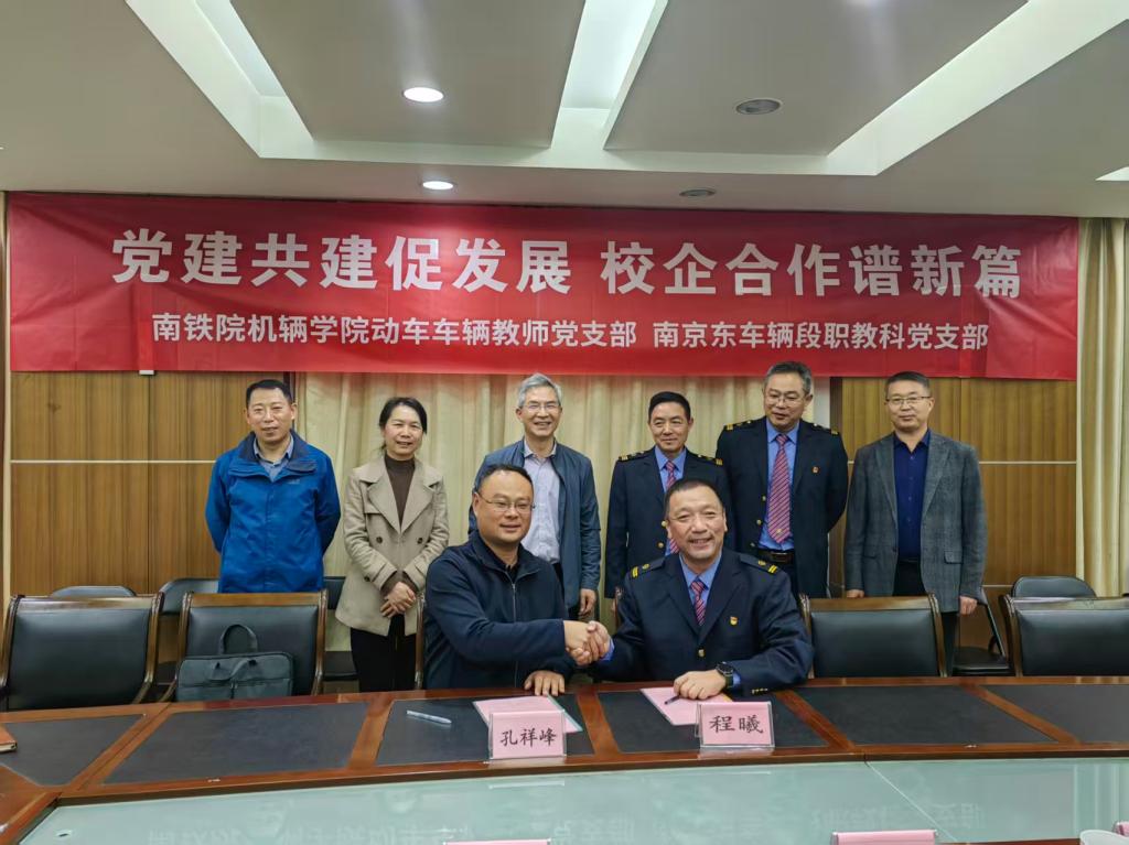 活动过程中,机车车辆学院动车车辆教师党支部与南京东车辆段职教科党支部签订了党建共建协议,就双方人才共育、文化共创、技术开发,以及资源共享搭建了融合联动平台。