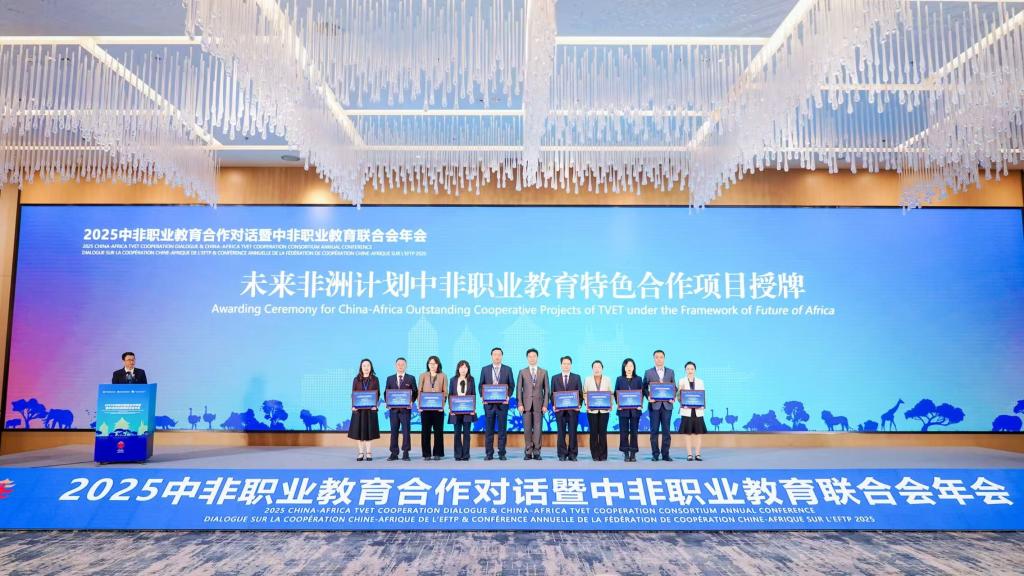 11月6-7日,2025年中非职业教育合作对话暨中非职业教育联合会年会在浙江金华召开。会议以“深化产教融合 建设中非职教共同体”为主题,围绕中非职业教育合作机制、产教融合平台建设及在非中企本土人才培养等议题,共商中非职业教育合作新路径。中国教育国际交流协会秘书长杨军、教育部职业教育与成人教育司综合改革处一级调研员李红东、非洲技术与应用型大学和学院协会秘书长扎哈·法勒、联合国儿童基金会西非和中非区域办事处区域主任吉勒·法尼努以及浙江省教育厅、金华市人民政府等有关领导出席会议并致辞。会议为“未来非洲计划中非职业教育特色合作项目”入选单位代表授牌。我校副校长曹国红受邀参会并参与成果发布环节。