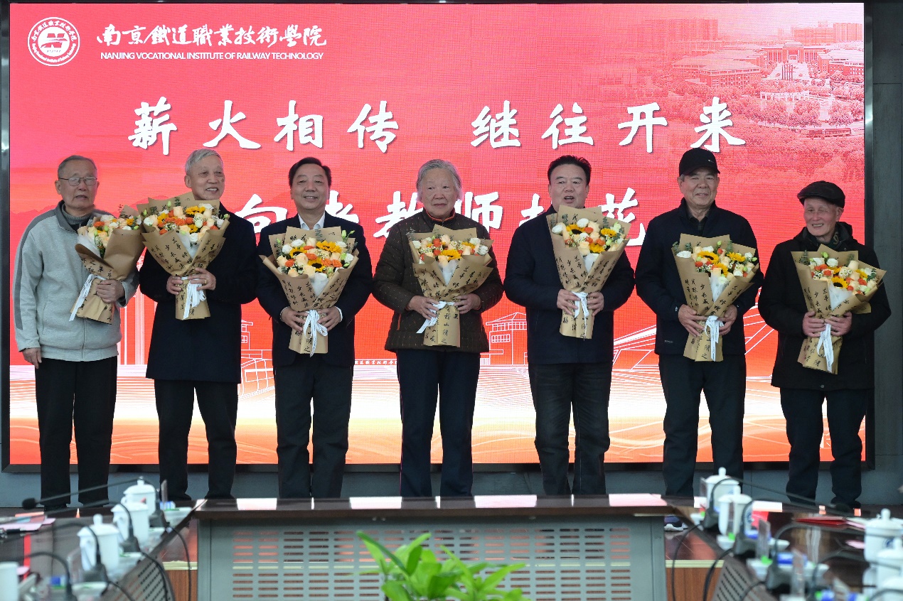 在温馨感人的“薪火相传,继往开来”环节,青年教师代表向顾希孟、吕春福、余达等七位老教师献上鲜花,表达崇高的敬意和真挚的祝福。老教师在随后的发言中深情回忆了铁道运输专业创办及发展过程中的艰辛与坚守,分享了自己的工作经历和感悟,并对专业的未来发展寄予厚望。学校老领导王虹、钱吉奎、都国雄也先后发言,回顾了学校事业发展及铁道运输专业发展历程中的重要时间节点和重大举措,充分肯定了学校当前取得的办学成果,对学校未来实现更高质量发展提出了殷切期望和建设性意见。