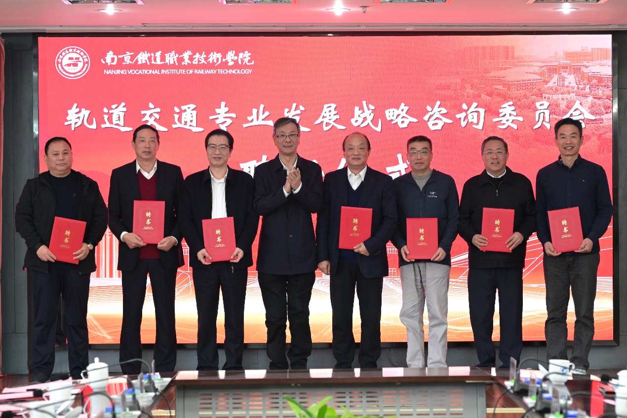 会议特邀国家铁路局原副局长陈兰华、中国铁路文工团党委书记兼团长邵长虹、上海铁路局原副局长刘建堂、浙江轨道交通集团原总经理霍劲翔、中国铁路投资集团原副总经理蒋学斌、九行路桥工程江苏有限公司总经理吴永林、厦门铁路事业发展公司副总经理洪群志担任学校轨道交通专业发展战略咨询委员会委员,党委书记贺兴初为他们颁发了聘书。