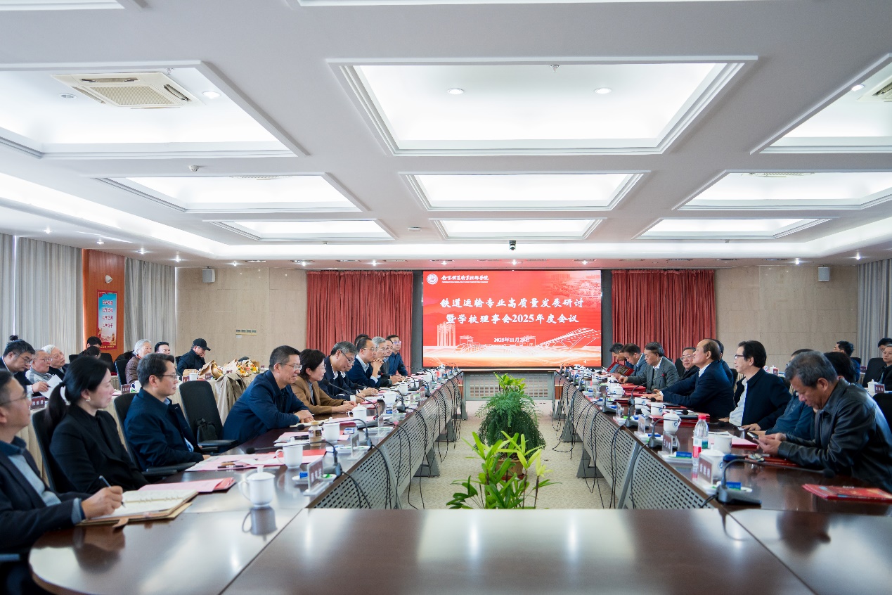 在喜迎84周年校庆暨铁道运输专业办学70周年之际,11月29日上午,学校在办公楼503会议室隆重举行铁道运输专业高质量发展研讨暨学校理事会2025年度会议。国家铁路局原副局长陈兰华、中国铁路文工团党委书记兼团长邵长虹、上海铁路局原副局长刘建堂、浙江轨道交通集团原总经理霍劲翔、中国铁路投资集团原副总经理蒋学斌、学校原党委书记王虹、原党委书记钱吉奎、原校长都国雄,学校党委书记贺兴初、校长叶智锐及学校党委班子全体成员出席会议,来自国铁、地铁、市域铁路等理事企业近30位行业专家,铁道运输专业老教师代表,铁道运输学院、城轨与市域交通学院、机车车辆学院教师代表及有关职能部门负责人参加会议。校长叶智锐主持会议。