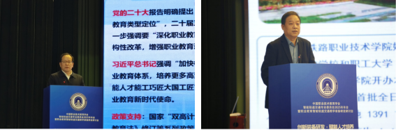 中国职业技术教育学会副会长兼秘书长刘建同,天津市委教育工委、市教委二级巡视员郭鑫勇,天津铁道职业技术学院党委书记王喜华出席并致辞。南京铁道职业技术学院党委原书记钱吉奎,北京交通大学轨道车辆安全监控与健康管理研究中心主任岳建海等领导出席会议。会议由天津铁道职业技术学院党委副书记、校长董亚男主持。