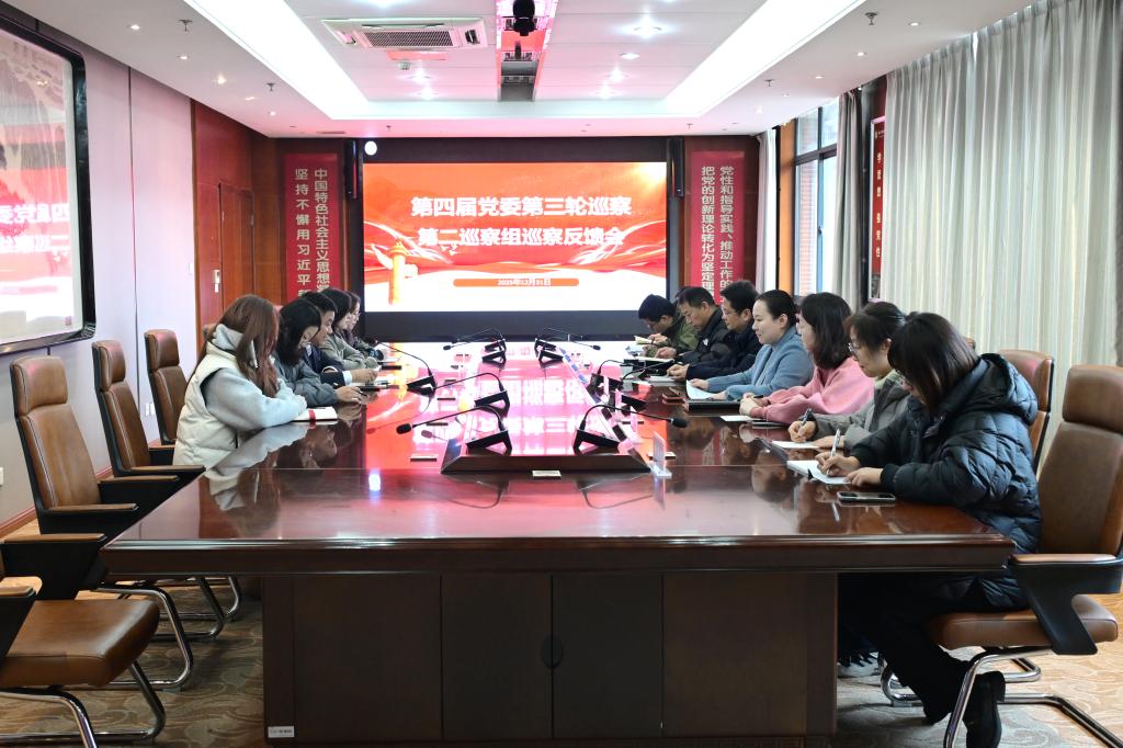根据学校党委巡察工作领导小组统一部署,12月31日上午,学校第四届党委第三轮巡察第二巡察组在办公楼403会议室召开巡察情况反馈会。第二巡察组组长曹国红副校长出席会议。第二巡察组全体成员、被巡察单位教职工参加会议。