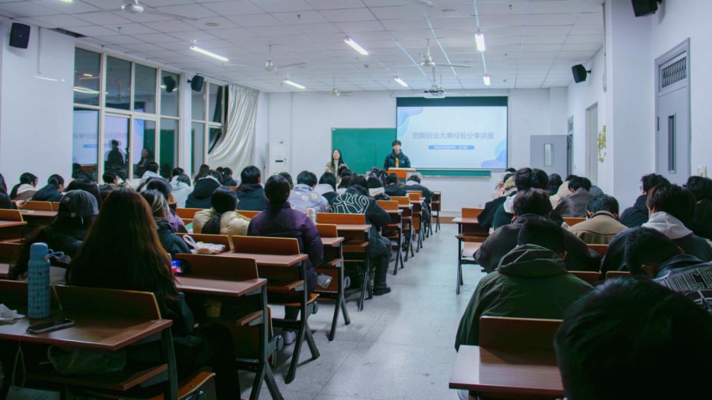 本次活动特邀学院在多项国家级、省级创新创业赛事中屡获佳绩的于鑫、王思特两位同学担任主讲。他们结合自身参赛经历,围绕项目选题、团队组建、方案优化、现场答辩等关键环节,分享了宝贵经验与实用技巧。交流环节气氛热烈,同学们踊跃提问,深化了对创新创业竞赛的认识。