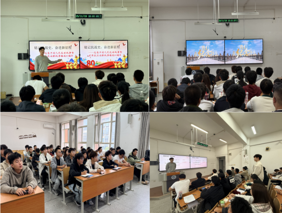 活动现场氛围庄重,参与人员有序入场。活动以主题宣讲开篇,学生党员范锦涛深入阐述了抗战胜利80周年的历史意义,明确“铭记历史、传承精神”的核心目标。史实学习环节通过PPT梳理14年抗战的艰辛历程与关键节点,建立完整知识认知体系;随后的视频观看环节,通过英烈事迹与历史场景再现,让在场人员直观感受抗战岁月的无畏与坚守。活动现场还设置了互动抢答,围绕核心知识点展开,大家踊跃举手、积极应答,在趣味互动中巩固历史知识,深化学习效果。活动最后,全体人员合影留念,定格这一意义非凡的学习时刻。