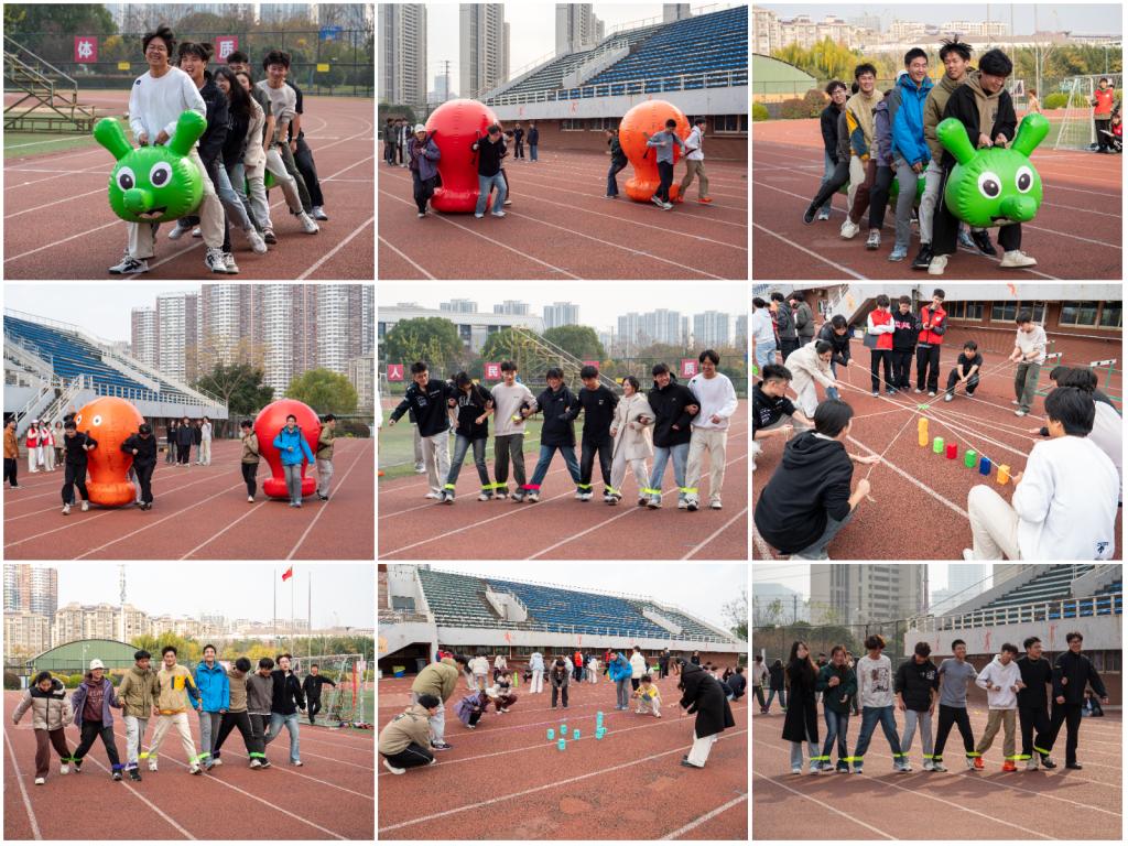 活动伊始,同学们在主持人引导下进行热身并随机组队,四支队伍通过创意队名与口号迅速凝聚团队归属感。随后,各队依次挑战了“和谐动车”、“章鱼行走”、“合力建塔”和“八人九足”四个精心设计的团队项目。活动现场气氛热烈,加油呐喊声此起彼伏。在“和谐动车”中,队员们化身“车厢”紧密连接,步调一致;在“章鱼行走”里,沟通协作是关键;在“合力建塔”时,策略与耐心并存;经典的“八人九足”则考验着团队的默契与速度。各队成员全心投入,相互支持,深刻体会了“聚力同行”的力量,展现了学院学子团结协作、朝气蓬勃的风采。最终根据团队总积分评选出了团体一、二、三等奖。