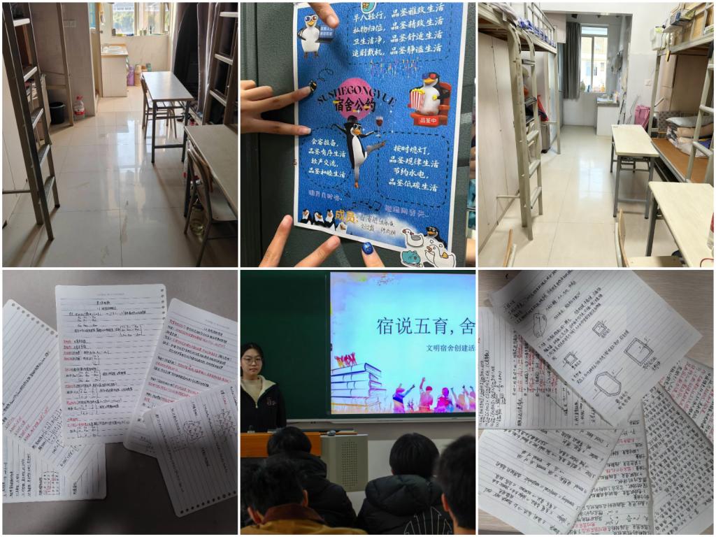 活动围绕“德育之星”、“智育之星”、“体育之星”、“美育之星”、“劳育之星”五大赛道展开。各宿舍踊跃参与,特色鲜明:德育赛道成员共同制定公约,涵养优良风气;智育赛道推选“最美笔记”,营造共进学风;体育赛道展示运动风采,凝聚青春活力;美育赛道巧手改造弃物,践行环保美学;劳育赛道聚焦功能区整理,打造整洁环境。学院学生会生活部及班级生活委员依据主题契合度、创意落地性、团队协作度进行线上评审,最终评选出16间“五育之星”宿舍,并为获奖代表颁发荣誉证书,树立了宿舍文化建设标杆。