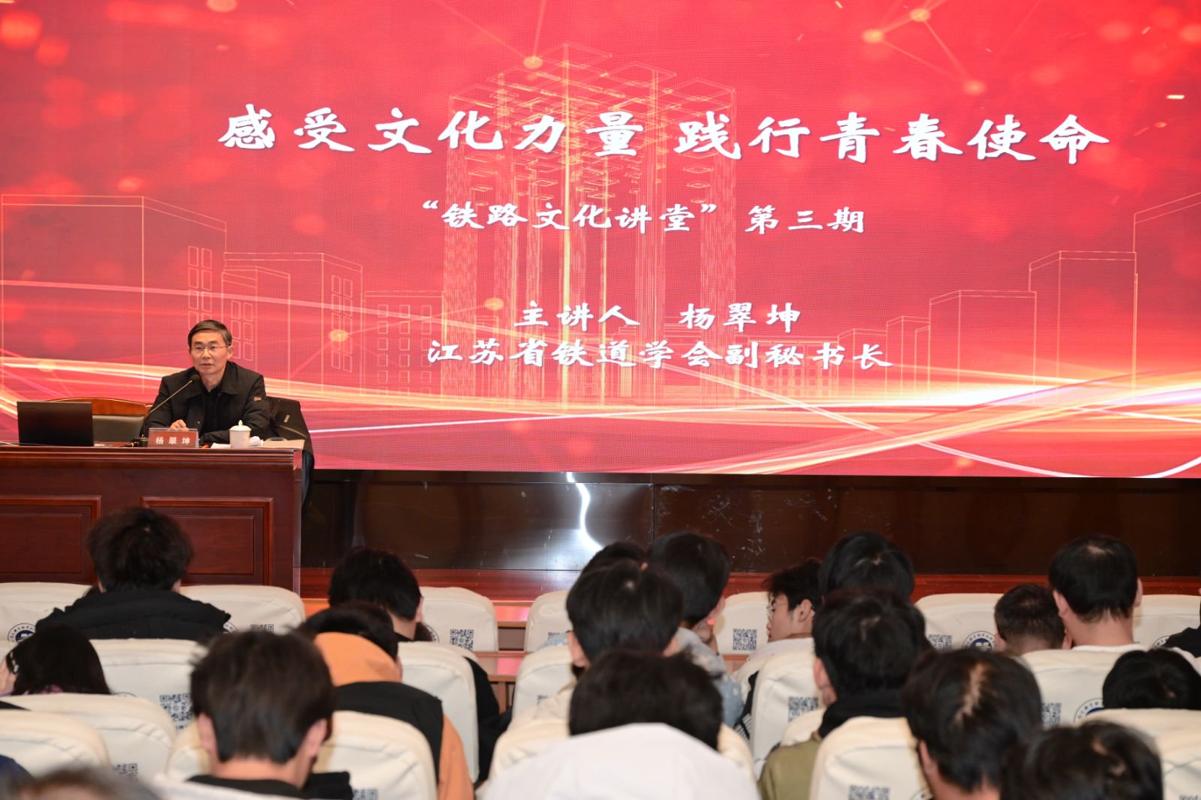 12月4日下午,江苏省铁道学会副秘书长、我校1984届校友杨翠坤来校做“铁路文化讲堂”第三场专题讲座。200余名师生出席了讲座。讲座由铁路文化研究院院长何万一主持。
