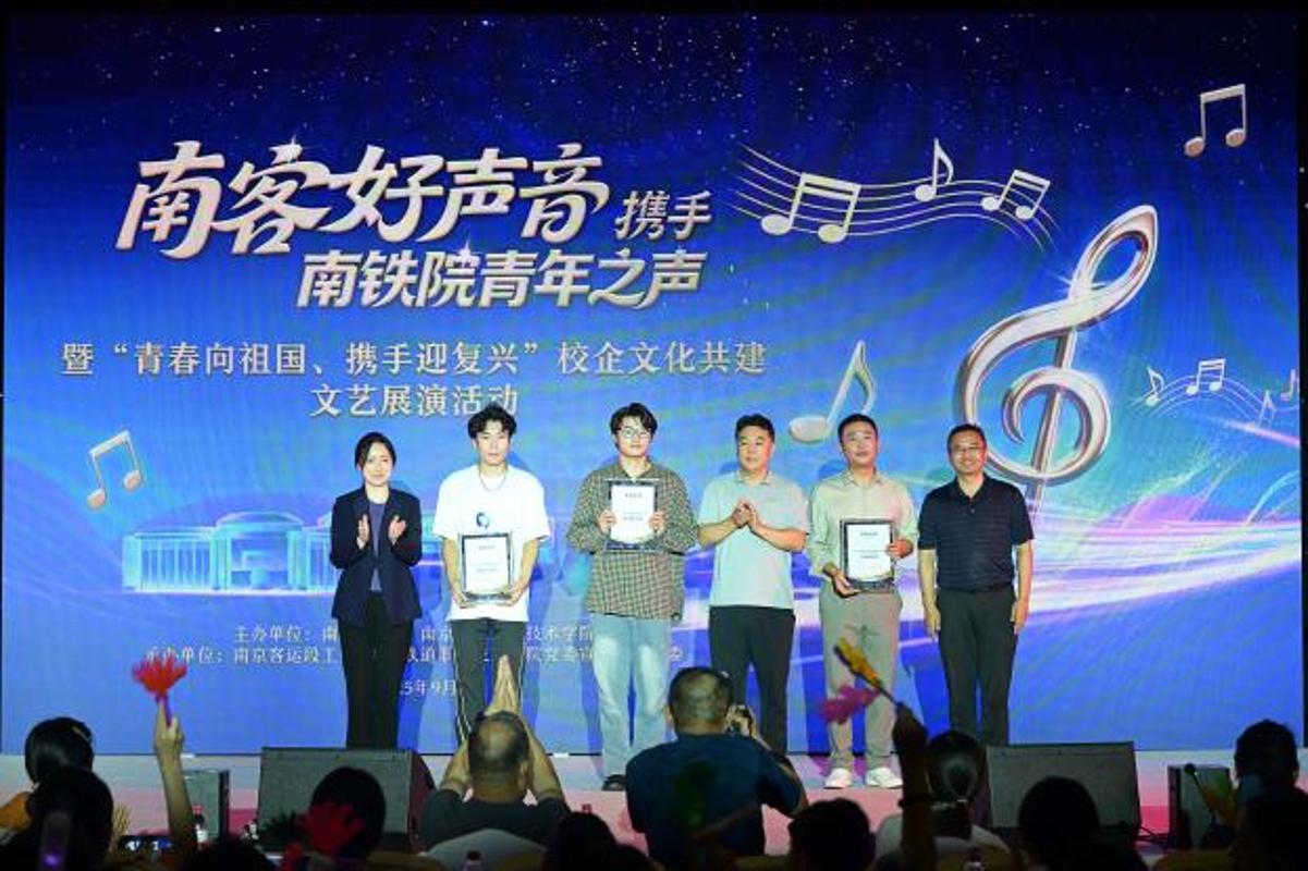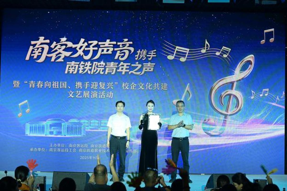 为深化校企合作,加强文化共建,展现新时代青年风采,9月28日晚,国铁上海铁路局集团南京客运段与南京铁道职业技术学院联合主办的“南客好声音”携手南铁院青年之声暨“青春向祖国,携手迎复兴”校企文化共建文艺展演活动在我校成功举办。南京客运段党委书记曹书文、段长吴国军、党委副书记刘艳明、工会主席李建到校出席活动,学校党委书记贺兴初,校长叶智锐,党委副书记陆勇,副校长赵婧,党委宣传部部长蔡有柱出席活动,校企双方办公室、工会、团委部门相关负责同志参加,南京客运段职工、学校师生代表500余人同聚办公楼办公厅,共同以歌声为纽带,奏响校企文化交融的青春乐章。
