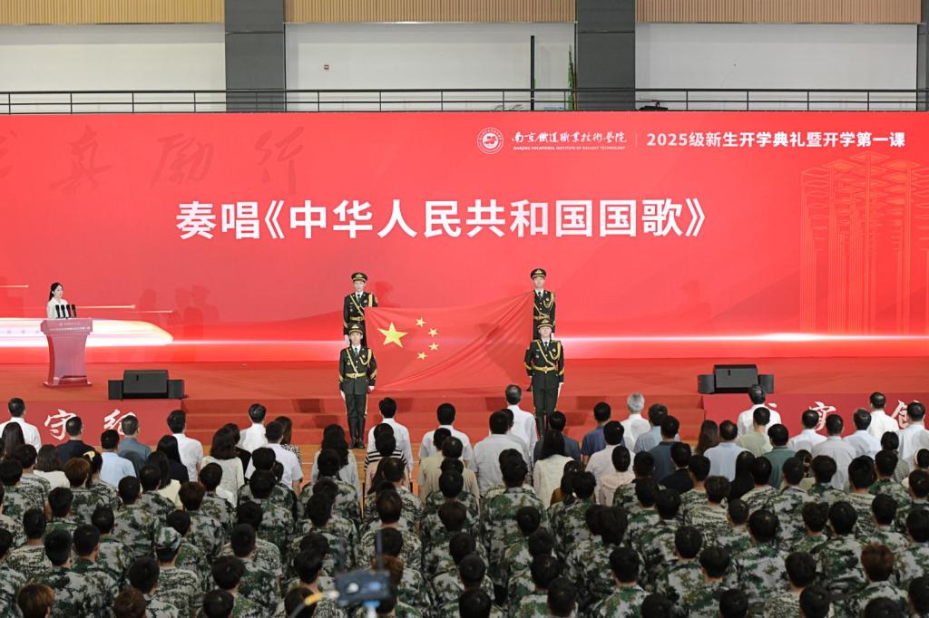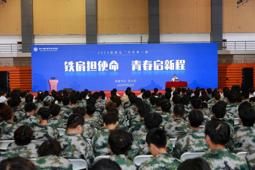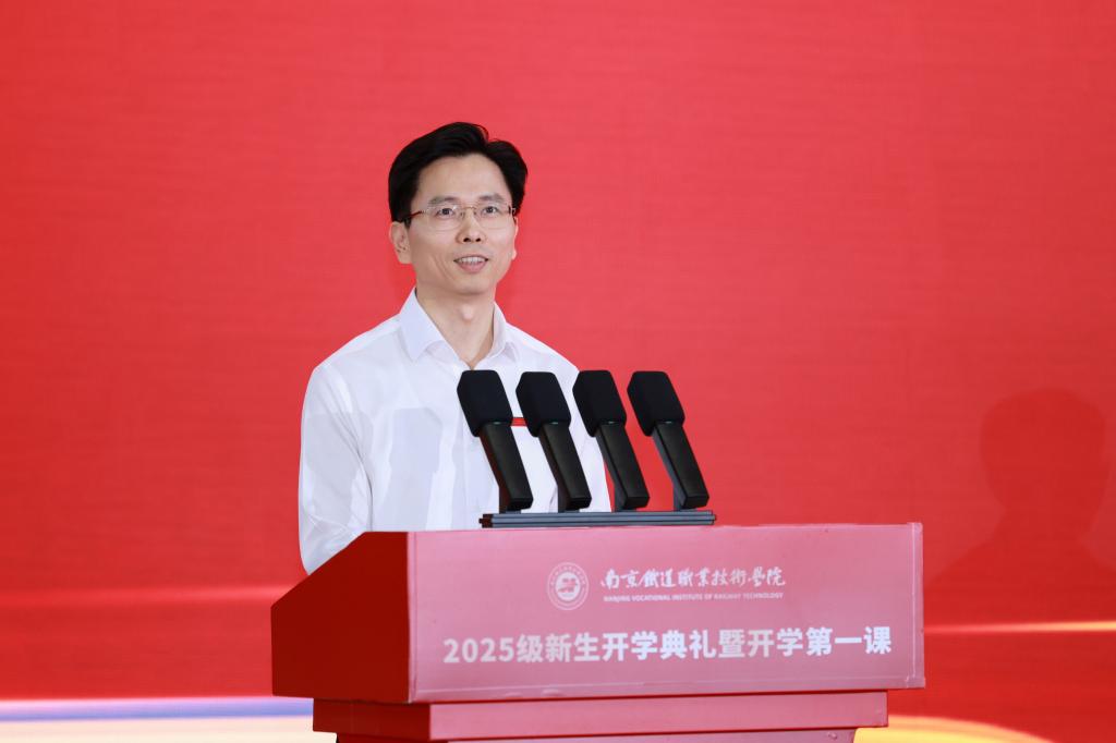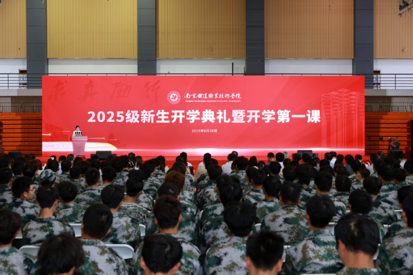 2025年9月30日上午,南京铁道职业技术学院隆重举行2025级新生开学典礼暨开学第一课。学校党委书记贺兴初,党委副书记、校长叶智锐,党委副书记陆勇,副校长曹国红,副校长李从峰,组织部、统战部部长张健,宣传部部长蔡有柱,全体中层干部,马克思主义学院全体教师,2025级全体新生及辅导员、班主任共同出席活动。典礼由副校长赵婧主持。此次活动不仅标志着4406名新同学在南铁院正式开启求学新征程,更是一堂激励全体南铁学子砥砺奋进、昂扬前行的思想盛宴。