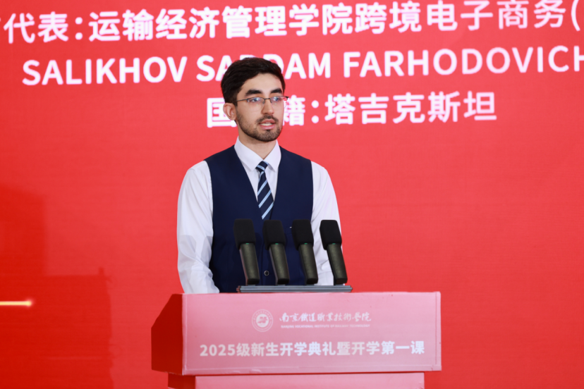 留学生代表李杉在发言中表示,加入南铁院是一个充满希望与无限可能的新起点,更是缔结深厚友谊的新纽带。他向大家提出三点倡议:一是永葆探索未知的热忱;二是坚守直面挑战的勇气;三是互帮互助,成为彼此坚实的依靠。