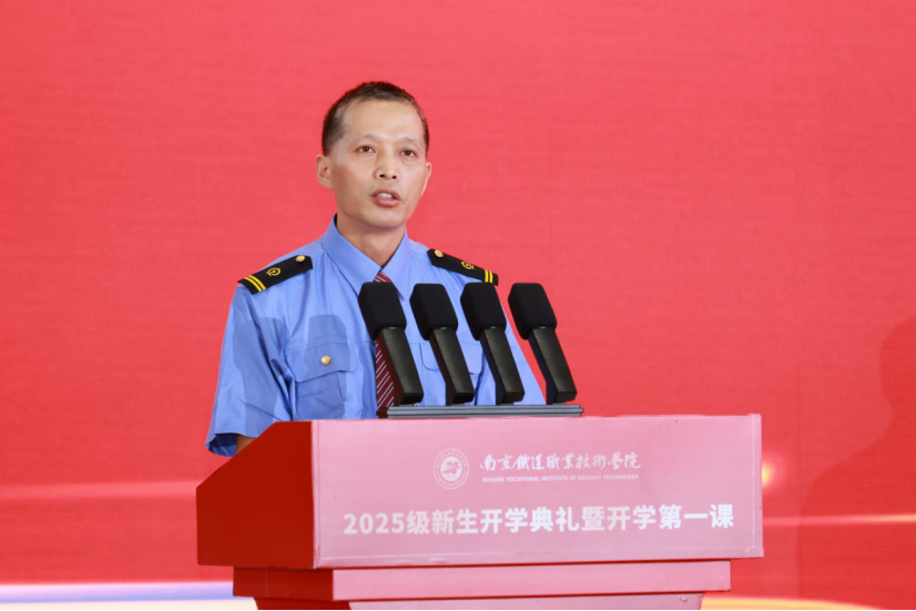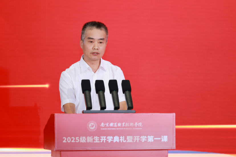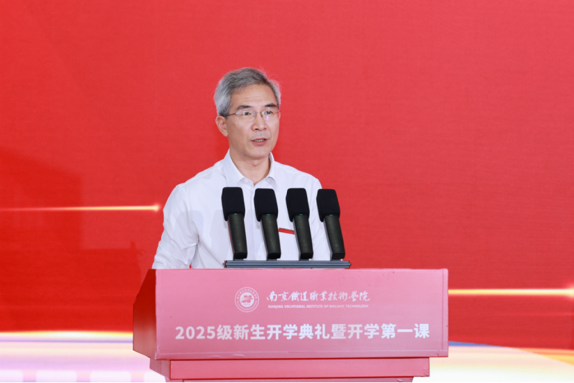 校长叶智锐代表学校热烈欢迎2025级新生的到来,并围绕“勇担时代使命,绽放青春光彩”主题发表了热情洋溢的讲话。他回顾了南铁院的办学历程与初心使命,介绍了学校近年来取得的办学成效与行业领先地位。面对即将展开崭新大学生活的新同学,叶校长提出三点殷切期望:一是要坚定崇高理想信念,明确人生奋斗目标,做好大学生活规划;二是要练就独立生活本领,练就过硬职业技能,涵养协作担当精神;三是要增强法纪意识,提升道德修养,淬炼吃苦耐劳意志。他勉励全体新生脚踏实地、持之以恒,以奋斗激情筑梦圆梦,努力成长为德智体美劳全面发展的社会主义建设者和接班人。