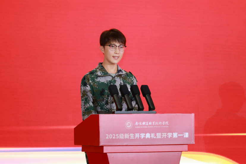 新生代表、铁道运输学院铁道交通2505班刘洋同学发言。他真挚感谢了学校老师与教官的付出,并郑重倡议以八十四年校史传承为起点,以“求真励行”校训为指引,在南铁院学好专业知识、锤炼过硬技能、扛起青年责任,让青春绽放最耀眼的光芒。