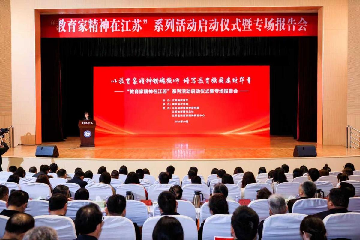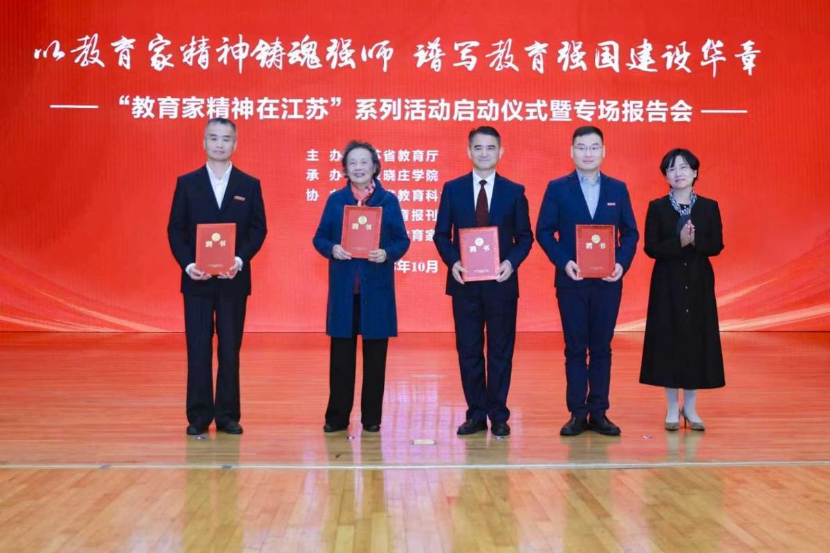 10月31日,江苏省教育厅举行“教育家精神在江苏”系列活动启动仪式暨专场报告会,省教育厅副厅长陈艳、教育部教师工作司相关处室负责人出席活动并致辞,全省各设区市教育局、省内师范生培养院校分管负责人,南京晓庄学院全体校领导,驻宁高校教师代表、南京市中小学幼儿园教师代表等共计1000余人参加活动。全国最美教师、我校薄宜勇教授受聘为江苏省教育家精神宣讲团成员,并在报告会上作宣讲报告。