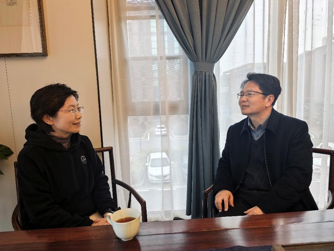 在与全国最美教师称号获得者薄宜勇教授交流时,校领导对其所取得的成绩以及无私奉献精神表达敬意。薄教授对此表示感谢,并回应将依托“最美教师工作室”,持续开展教学研讨、青年教师传帮带等工作,以扎实行动践行育人使命,带动更多教师共同成长,为学校高质量发展做出新的贡献。