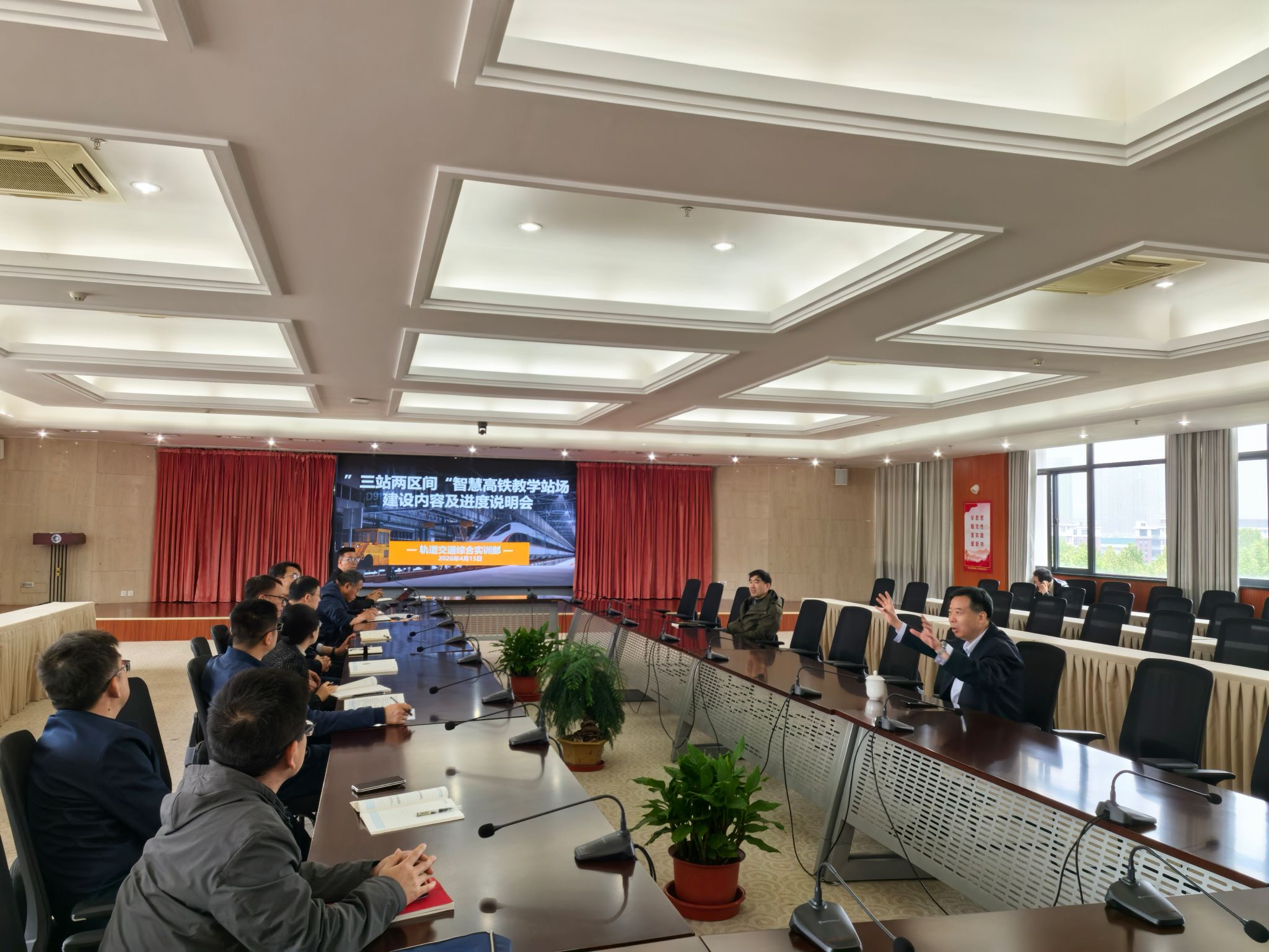 会上,轨道交通综合实训部主任张文对 “三站两区间” 智慧高铁教学站场项目的核心建设内容、当前整体推进进度作了全面详细的汇报。针对二级学院提出的实训功能适配、教学场景对接、资源协同利用等核心关切问题,实训部和基建办逐一进行了回应与解答,进一步厘清了项目建设的核心定位与服务方向,凝聚了多方协同推进的工作共识。