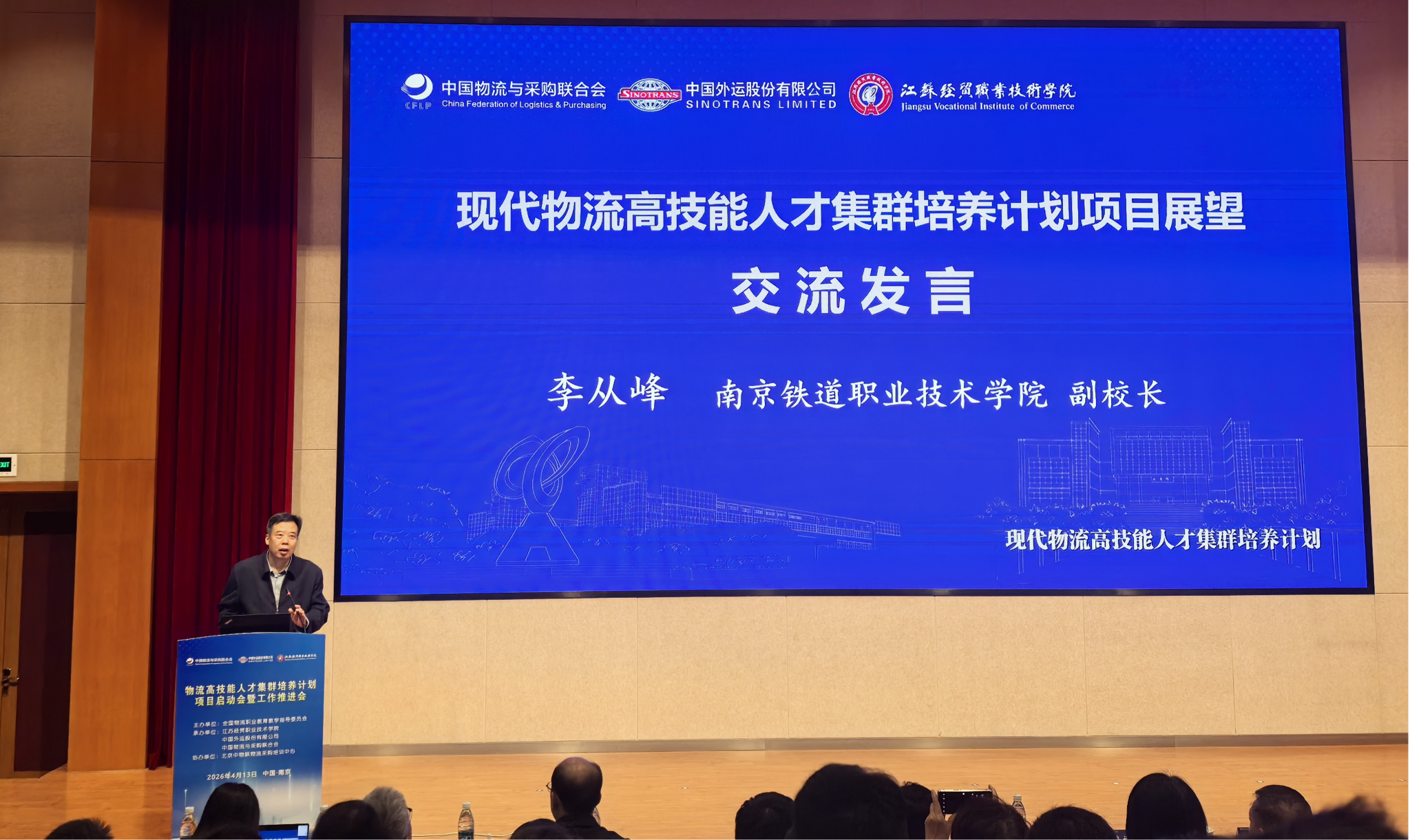 2025年4月14日,现代物流领域高技能人才集群培养计划研讨会在南京召开。我校副校长李从峰出席启动仪式并作现场交流。