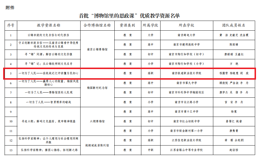 近日,江苏省首批“博物馆里的思政课”优质教学资源认定结果公布,我校马克思主义学院申报的《一切为了人民——在统战记忆中读懂为民初心》教案入选。