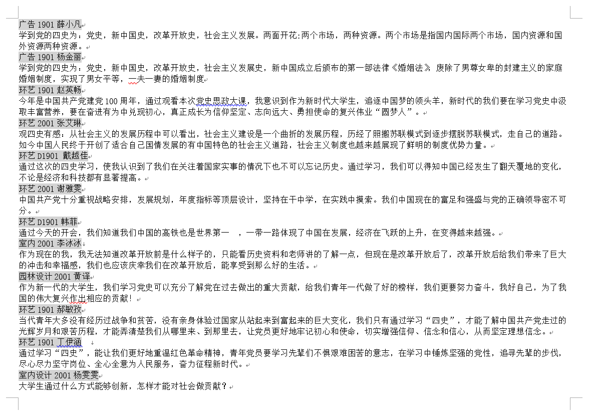 直播课结束后,同学们就学习心得和问题进行讨论并积极发言。最后,大家一致认为,作为大学生需要积累更多的知识,才有能力、有资格担起新时代青年的重任,因此,在学业上要以坚定的信心和持之以恒的毅力解决一切困难,进一步学习"四史"能不断提高自己的政治素养,帮助大学生铭记新中国历史,指引大学生走好人生道路,为实现中华民族伟大复兴贡献力量。