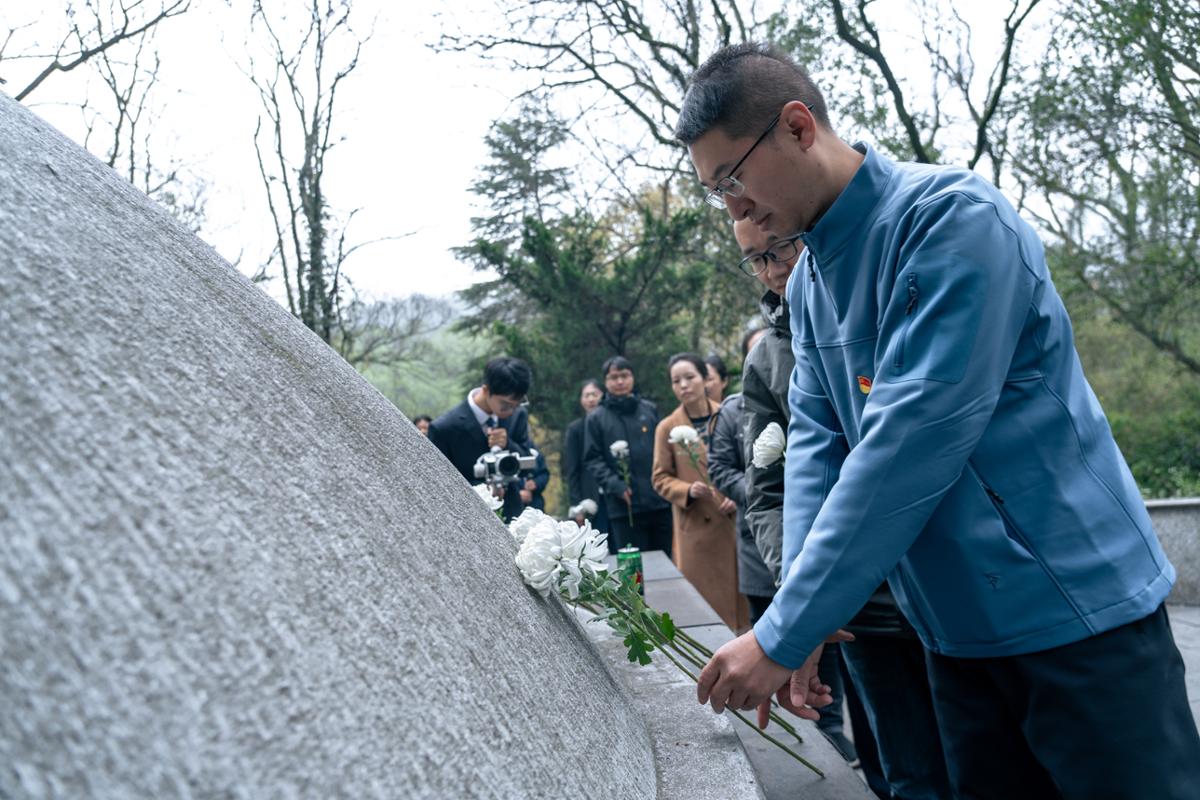 最后,全体参与人员手持白菊,依次上前献花,并绕碑瞻仰,以无声的行动,传递对英烈的深切追思和无尽缅怀。朵朵白花寄托哀思,声声默念传递敬意,现场庄严肃穆的氛围感染着每一个人,让红色精神在沉浸式体验中深深扎根。