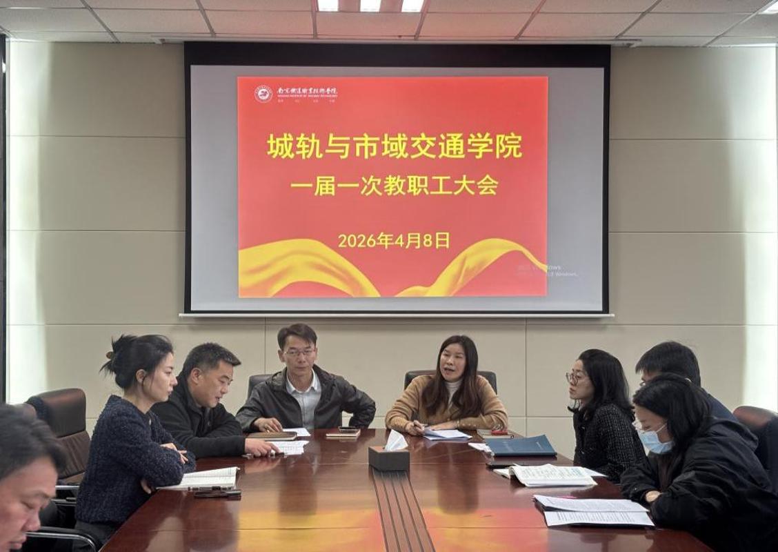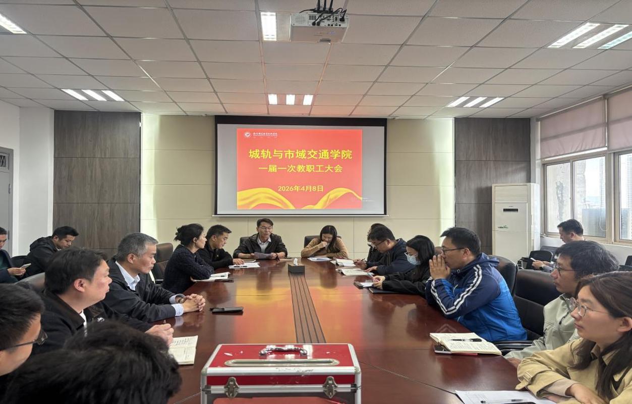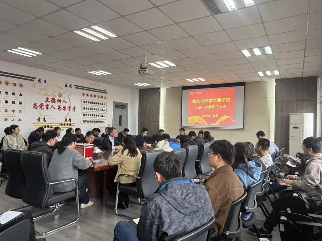 2026年4月8日下午,城轨与市域交通学院在天佑楼D525会议室顺利召开一届一次教职工大会,学院全体教职工参会。