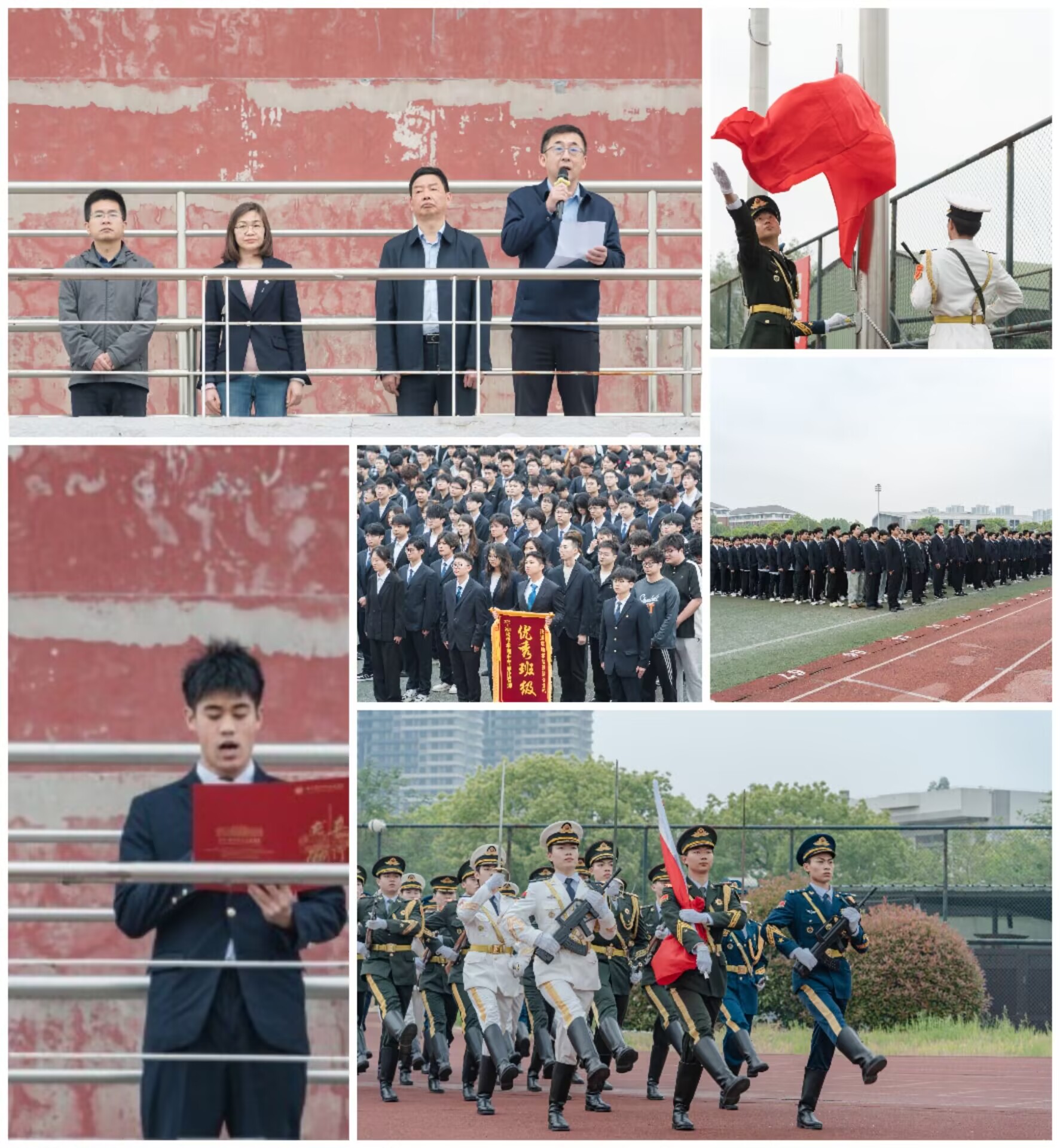 随后,程谦院长发表国旗下讲话。他指出,升旗仪式不仅是爱国主义教育的重要载体,也是学院深入推进半军事化管理的关键实践。他向全体同学提出三点希望:一要坚定理想信念,把个人理想融入国家发展和铁路事业的大局;二要严守纪律规范,以半军事化标准锤炼过硬作风;三要苦练过硬本领,深耕专业知识,以实干践行“交通强国、铁路先行”的时代使命。讲话结束后,大会对半军事化管理优秀集体进行了表彰,受表彰班级代表依次上台领奖。