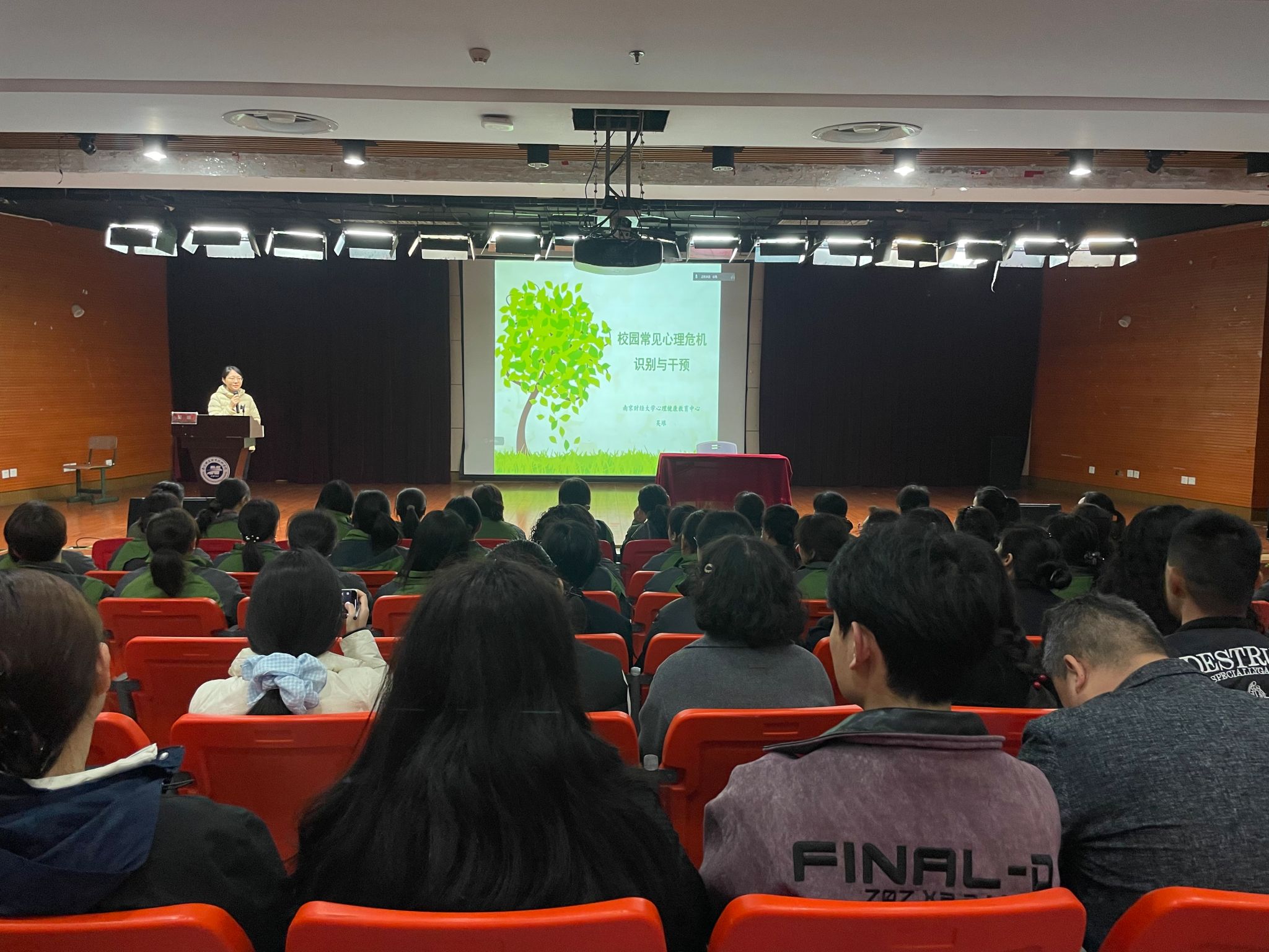 为进一步提升校园一线工作人员大学生心理危机识别能力与应急处置水平,夯实全员育心校园心理安全工作体系,切实守护学生心理健康与生命安全,2026年3月24日上午,我校心理健康教育中心和素质教育部特邀南京财经大学心理健康教育中心主任吴垠,开展主题为“常见心理危机识别与干预”专题培训讲座。