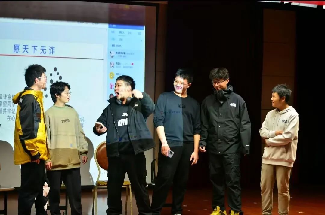 演出当天,首先邀请观众观看了各班拍摄的反诈情景剧,并邀请了拍摄效果较好的几组,进行了现场表演,同学们在被演员逗乐的同时,也深深地体会到电诈的危害。许多学生在观看演出后纷纷表示,这样新颖的科普方式很少见,戏剧表演生动有趣,极易引起大家的共鸣。
