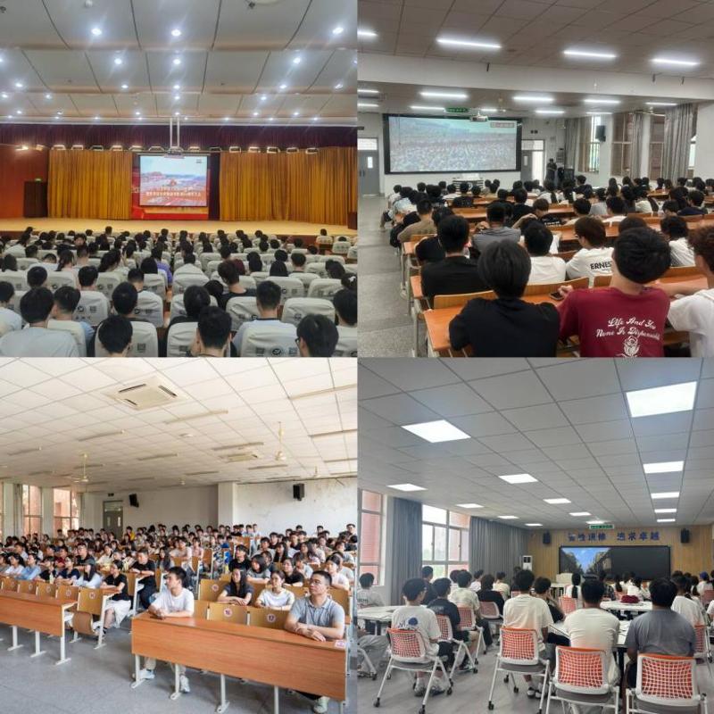 9月3日上午,纪念中国人民抗日战争暨世界反法西斯战争胜利80周年大会在北京天安门广场隆重举行,以盛大阅兵仪式,同世界人民一道纪念这个伟大的日子,共同开创更加光明的未来。城轨与市域交通学院全体师生齐聚各会场,共同见证了这一光荣而伟大的时刻。天佑楼D525会议室内,学院领导班子与全体教职工整齐就座;办公楼报告厅、励行讲堂和各教室内,学生们有序入座,通过高清大屏收看直播盛况。