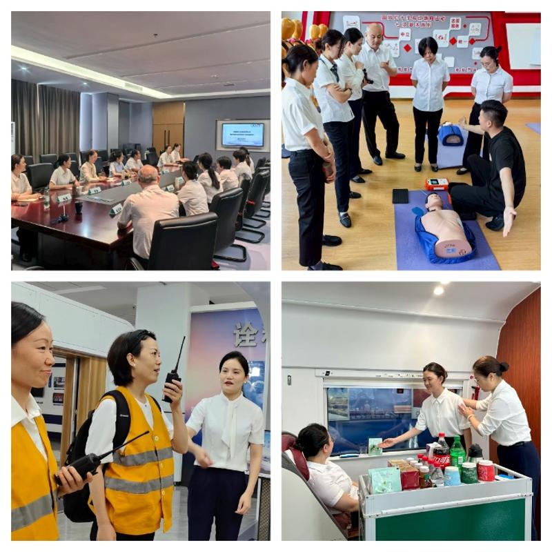 各位教师非常珍惜此次培训机会,严格遵守基地培训纪律,按要求着装,学习中积极向培训基地老师求教,努力提高自身实践能力。教师们除学习了铁路客运员、列车员岗位相关安全、作业标准等理论知识外,更多的是利用实训设备以情景模拟角色扮演方式学习旅客乘降、旅客服务、应急处置等关键作业流程。教师们认真学习,皆顺利地通过了培训基地的技能实操考核,具备铁路客运作业实操能力。