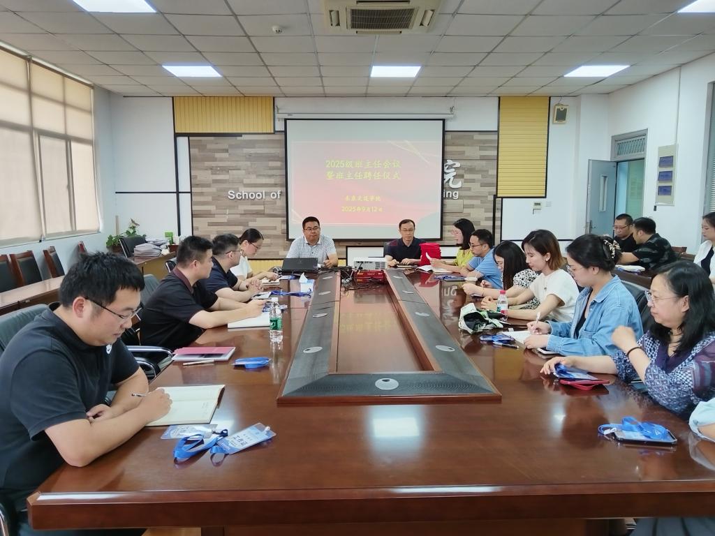 为进一步加强新生思想政治教育与管理服务工作,健全“三全育人”工作格局,未来交通学院于9月12日在学院会议室举行2025级新生班主任会暨聘任仪式。学院党总支书记王海军、院长杨杰、党总支副书记任维燕,2025级全体辅导员及新任班主任齐聚一堂,共同谋划新一届学生培养工作。会议由党总支副书记任维燕主持。