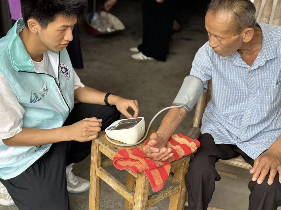 铁道机车2402班赵铭同学带领苍南追“锋”大学生志愿队在家乡开展多项便民服务。每日清晨,队员们早早开始蒸煮茯茶、打扫环境卫生,在阳光房内设立便民测量点,为居民提供血压、体重测量服务。此外,志愿队还设立流动服务岗,推便民服务车穿梭于街道,为环卫工人、交警等户外工作者送上解暑凉茶,为游客指引路线,以实际行动传递温暖与关怀。