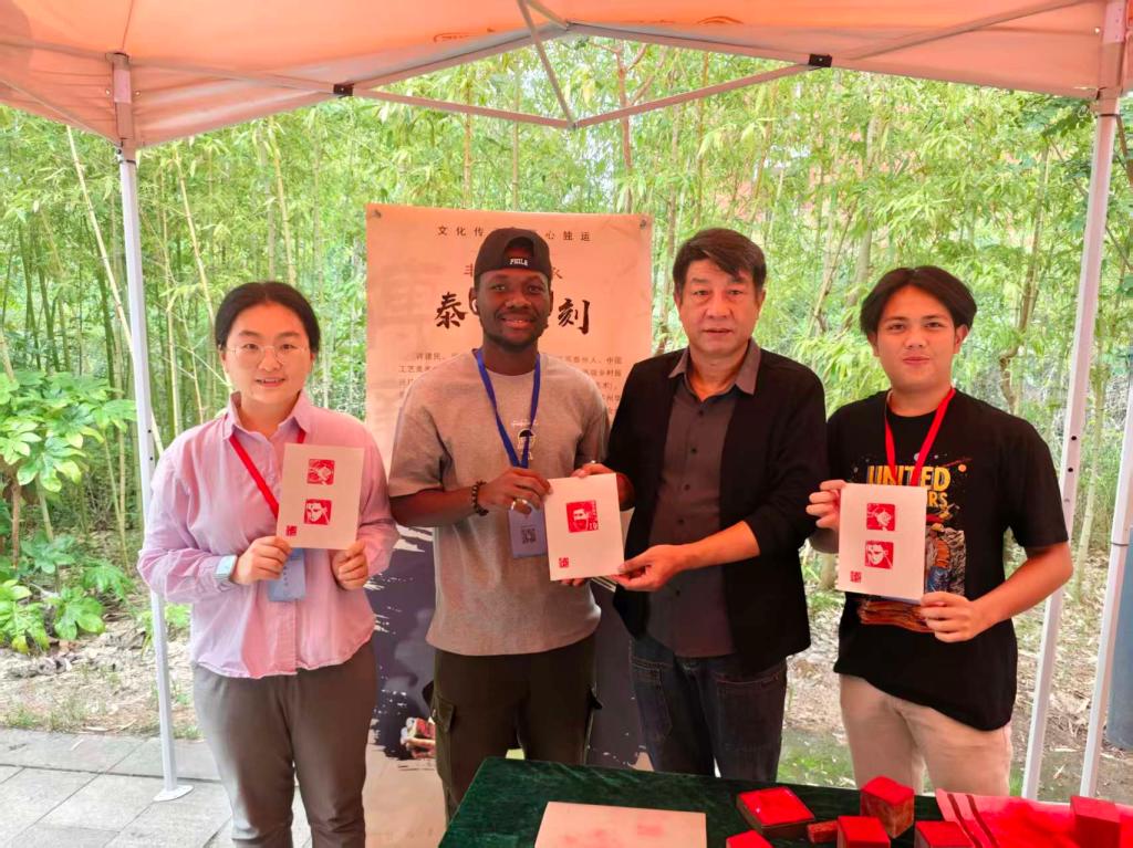 次日,泰州市博物馆前馆长黄炳煜带来题为《泰州的历史,历史的泰州》的专题讲座,生动梳理了泰州的历史文脉,拓宽了同学们的认知视野。在非遗体验环节,留学生们尝试了篆刻、木雕及海陵棕编等泰州地方传统技艺,切身感受到中国传统文化的精湛与多样。