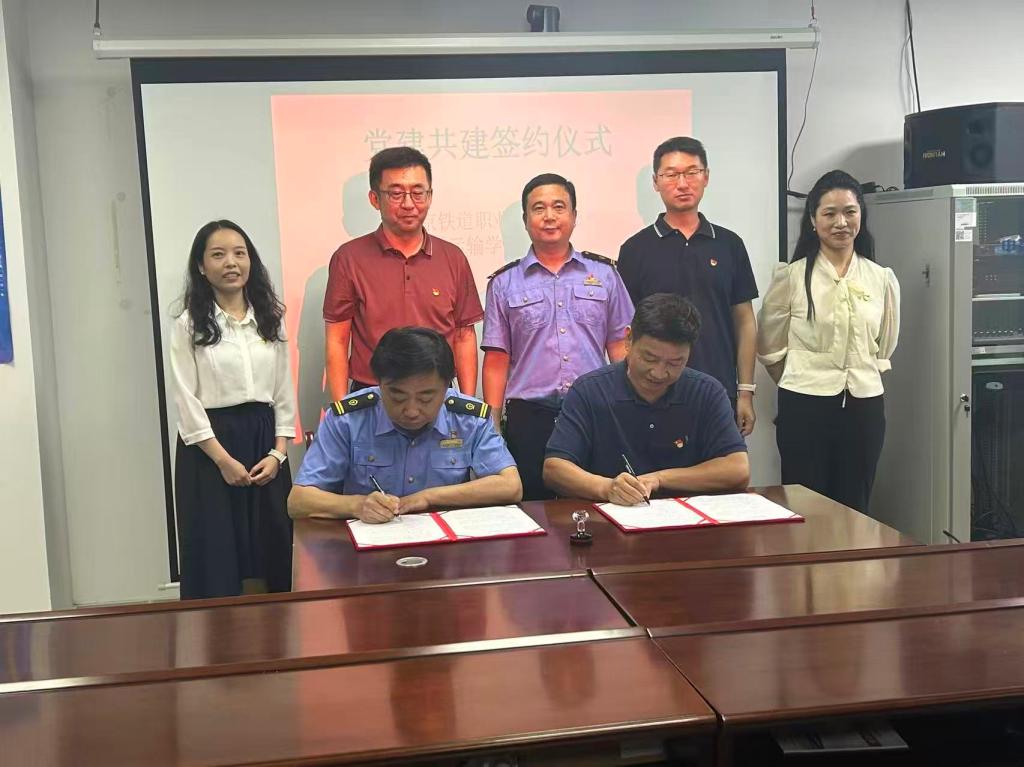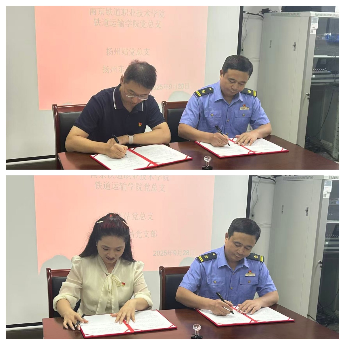 参观结束后,党建共建活动正式拉开帷幕。铁道运输学院党总支与扬州站党总支,铁道运营教师党支部、学生党支部分别与扬州东站党支部签订了共建协议。此次共建协议的签订,标志着双方在党建领域的合作迈出了坚实的一步,也为未来在人才培养、实践教学、科研合作等方面的深度合作奠定了基础。签约仪式上,冯洪高表示,希望通过党建共建这一平台,实现学院与扬州铁路站段的资源共享、优势互补,为学生提供更多实践机会,提升人才培养质量。余星星也强调,双方的合作将为铁路事业发展注入新的活力,共同推动铁路运输行业的创新与发展。