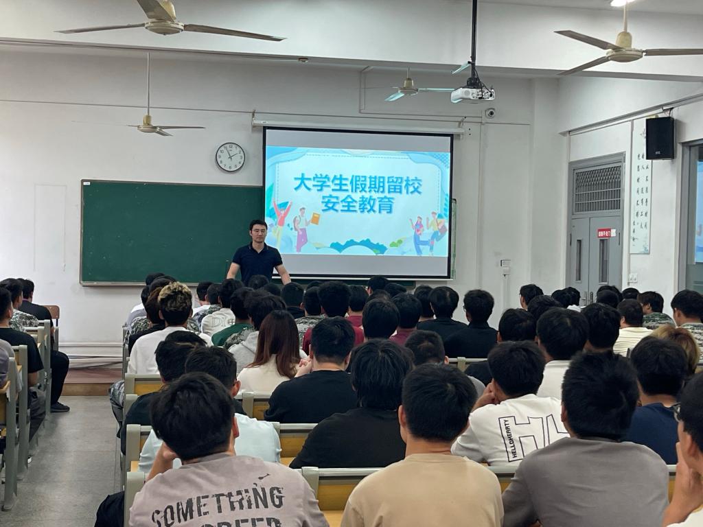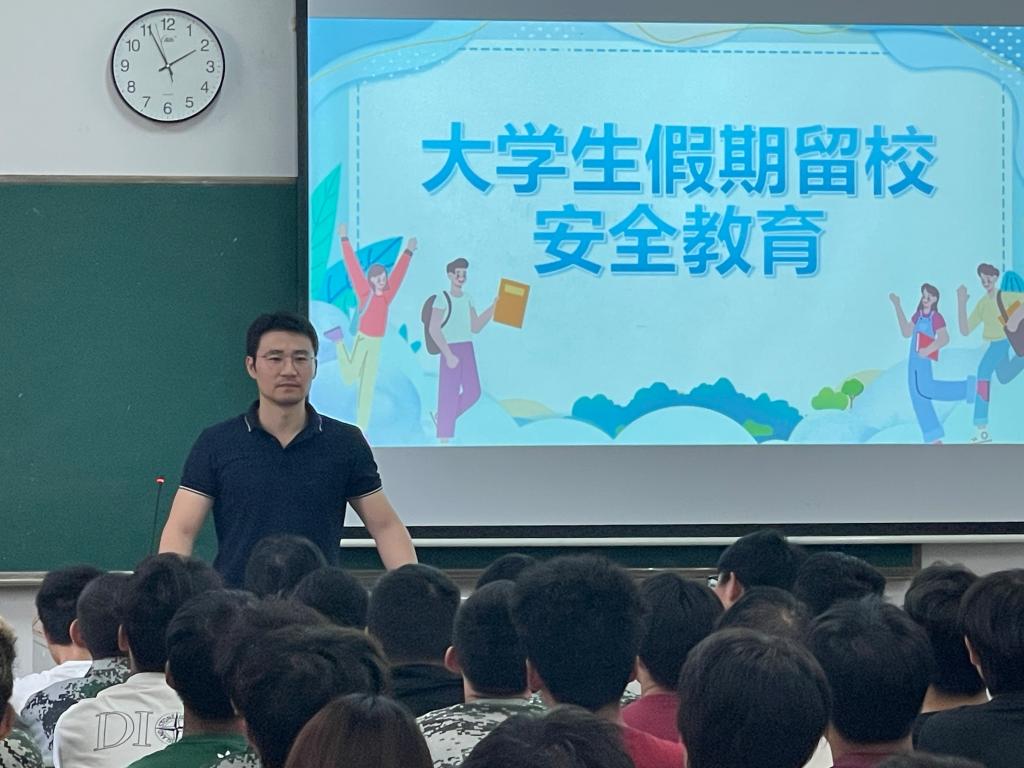会上,张老师强调了假期留校学生的宿舍安全管理规定以及相关注意事项,围绕校内、校外可能存在的安全隐患,从人身安全、财产安全、饮食安全、交通安全、防范电信网络诈骗等方面开展安全教育。同时,要求同学们遵守校规校纪,增强安全防范意识,学会互帮互助,科学合理安排好工作、学习和生活,度过一个安全、充实、有意义的假期。