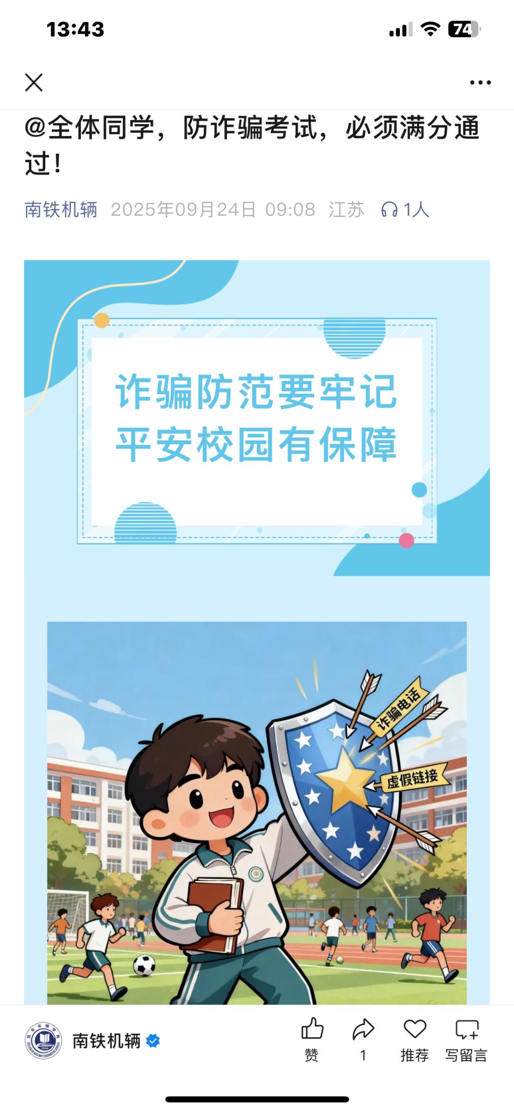 (3)新媒体平台广传播:依托“南铁机辆”微信公众号等线上阵地,定期推送防诈预警、案例剖析、安全提示等图文并茂的内容,拓展宣传覆盖面,提升宣传的时效性和趣味性。