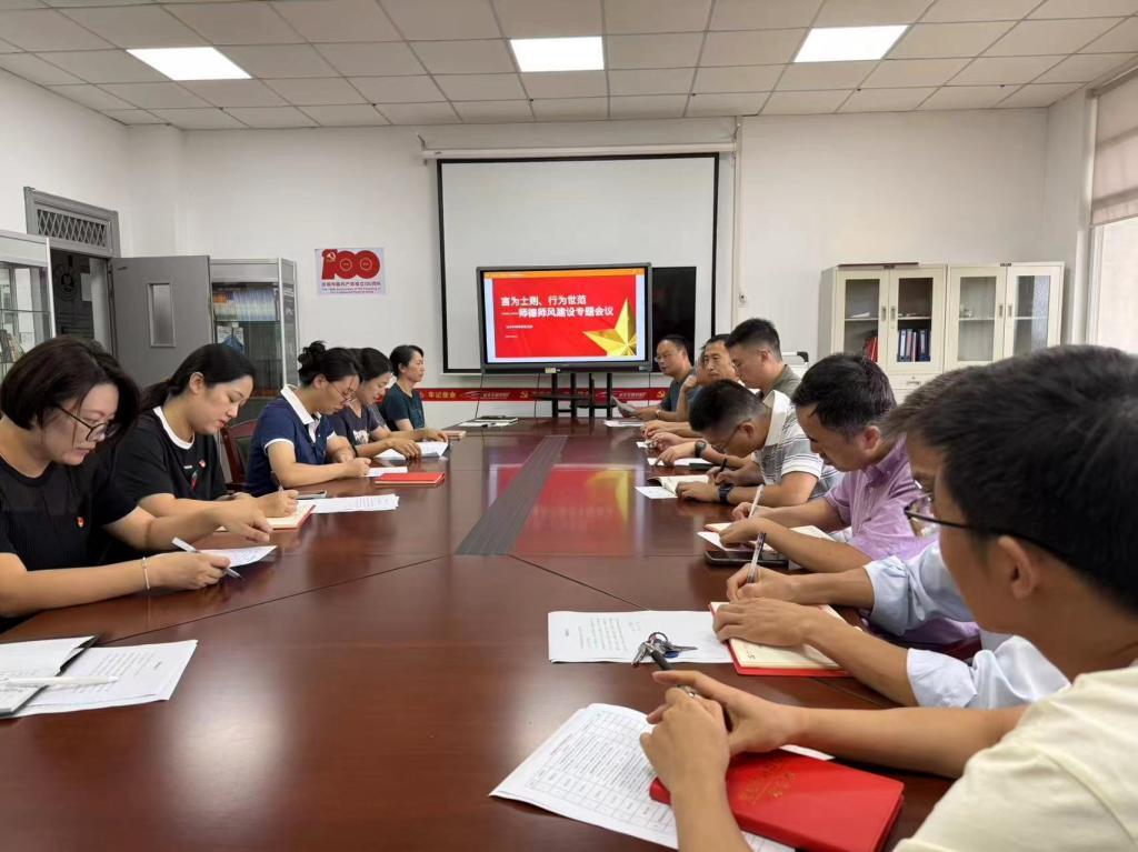 会上,支部书记孔祥峰带领全体教师集中学习了《新时代高校教师职业行为十项准则》等文件精神,并结合典型师德案例进行剖析讨论。教师们围绕 “如何践行‘言为士则,行为世范’” 展开热烈交流,分享教育教学中的师德实践经验,进一步明确了自身在传道授业解惑中应坚守的道德底线与职业追求。