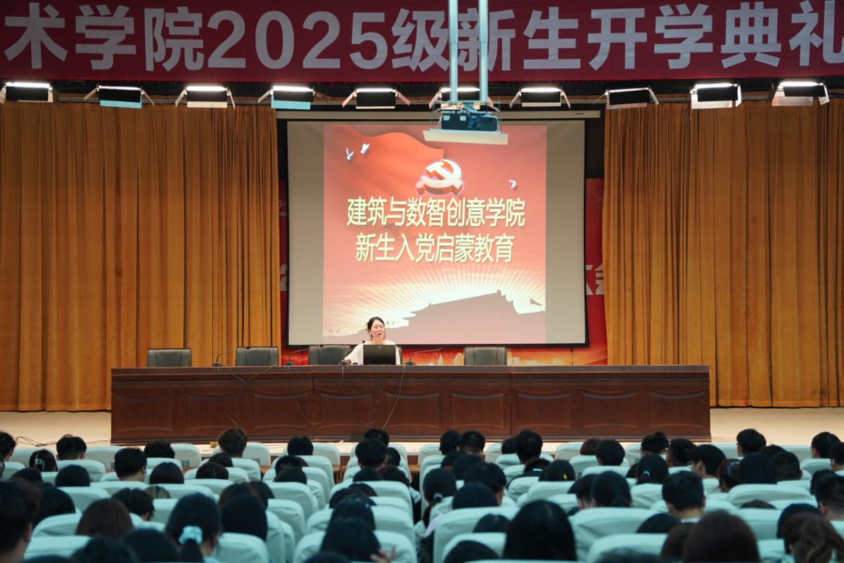 10月15日,建筑与数智创意学院学生党支部在办公楼报告厅举办2025级新生入党启蒙教育暨三季度支部党课。本次活动以“启航・初心铸信仰”为主题,由学院学生党支部书记王子璇主讲,2025级全体新生参会,旨在帮助新生系统掌握入党知识,树立正确的入党认知。