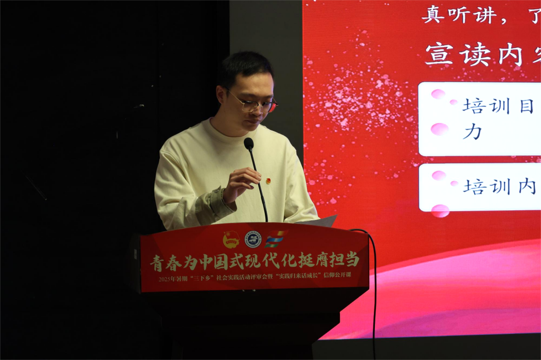 仪式在中国共产主义青年团团歌中拉开帷幕。王启超老师就本次培训的背景意义与核心要求发表讲话,并提出遵守纪律、认真学习、转化行动以争取入团的要求与期望。团课要求围绕“纪律出勤”“学习态度”两大方面,明确全勤参与、提前请假、遵守课堂纪律、做好课前准备、专注听讲、规范记录、积极互动等具体规范。入团积极分子代表范淑蓉同学上台发言,阐述了自己对共青团的认识,表达了对本次培训活动的期待以及积极向团组织靠拢的坚定决心。
