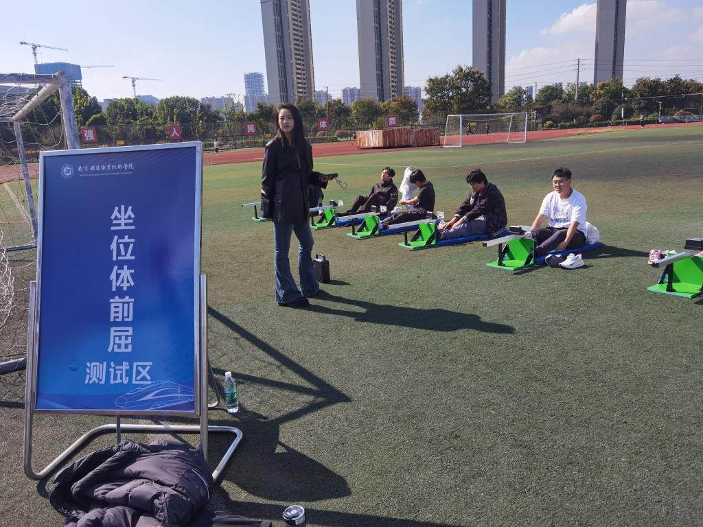 在现场组织方面,体育部教师团队全程坚守岗位,全力负责学生信息检录、测试流程引导及设备操作指导等工作。面对学生提出的疑问,教师们耐心解答,帮助学生快速了解测试要求与流程;在设备使用环节,教师们逐一示范,确保每位学生都能正确操作设备,顺利完成测试。