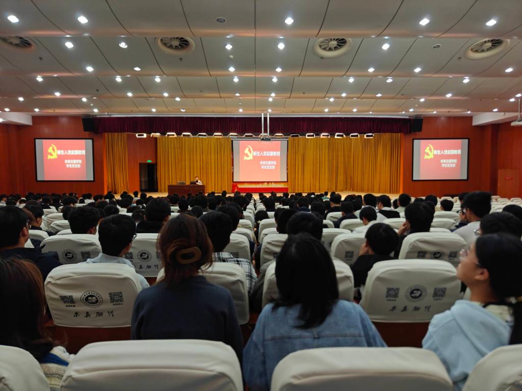 为切实加强新生思想政治引领,筑牢党性基础,引导广大新生正确认识党、向往党、追随党,未来交通学院学生党支部于10月23日举行2025级新生入党启蒙教育大会。本次大会以“使命·未来·先锋路”为主题,由学院学生党支部书记胡筱萌主讲,2025级全体新生共同参与,旨在开启新生政治追求的新篇章,激励其将个人理想融入党和国家事业发展的宏伟蓝图。