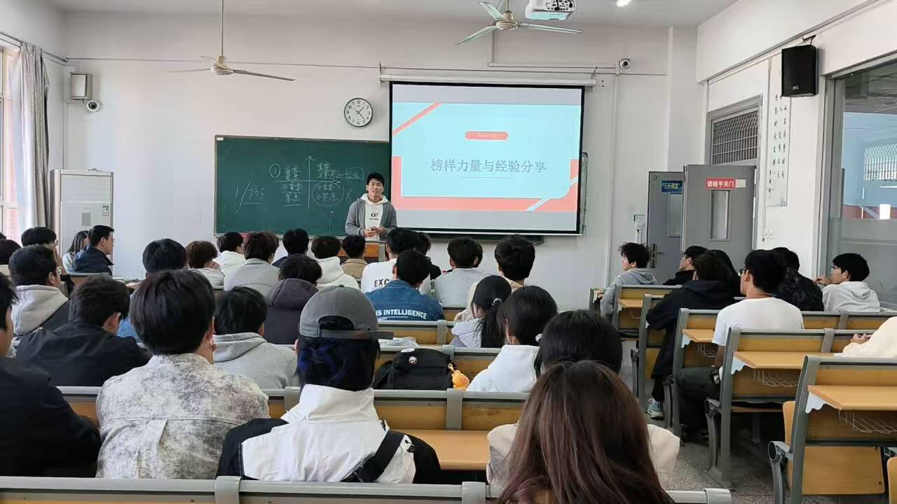 随后,辅导员助理陈升同学分享了平衡学业与工作的经验。他强调两者相辅相成:工作锻炼的组织协调能力可助力小组学习,专业知识积累又能推动工作创新。他总结道:“只要掌握科学方法,保持积极心态,就能实现学业进步与能力提升的双丰收。”这些实用经验引发了在场同学的强烈共鸣。