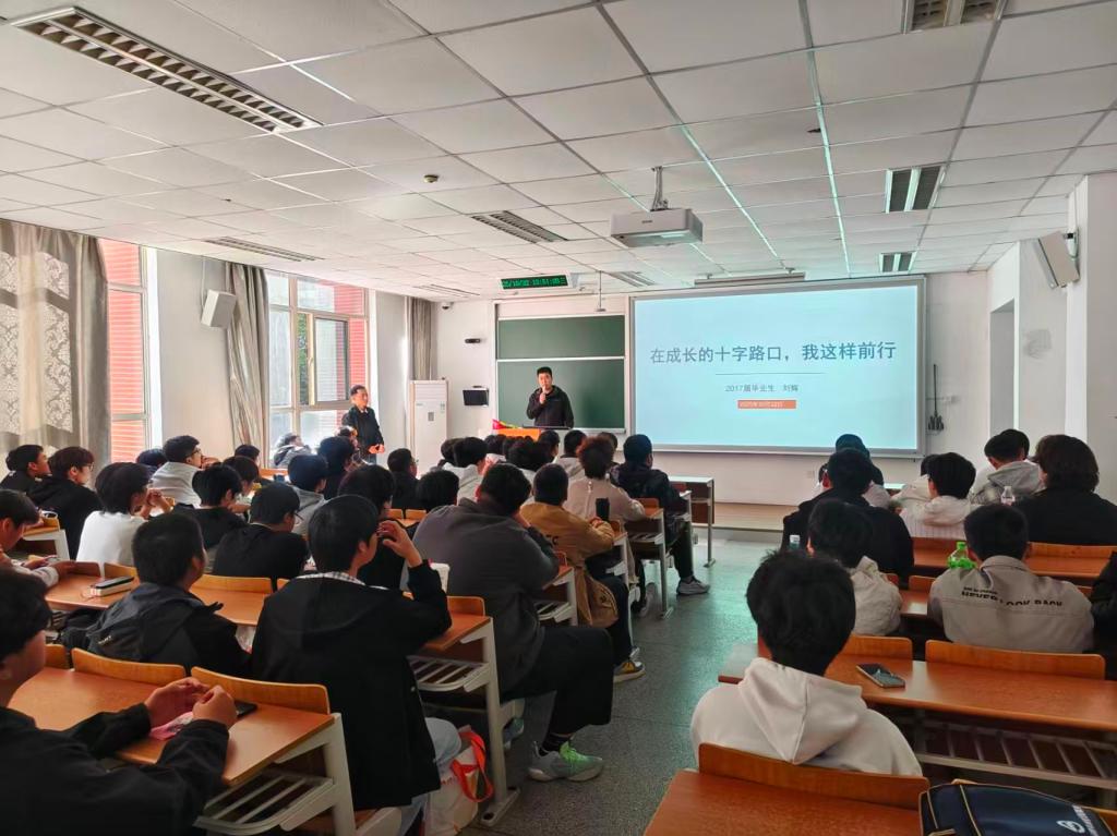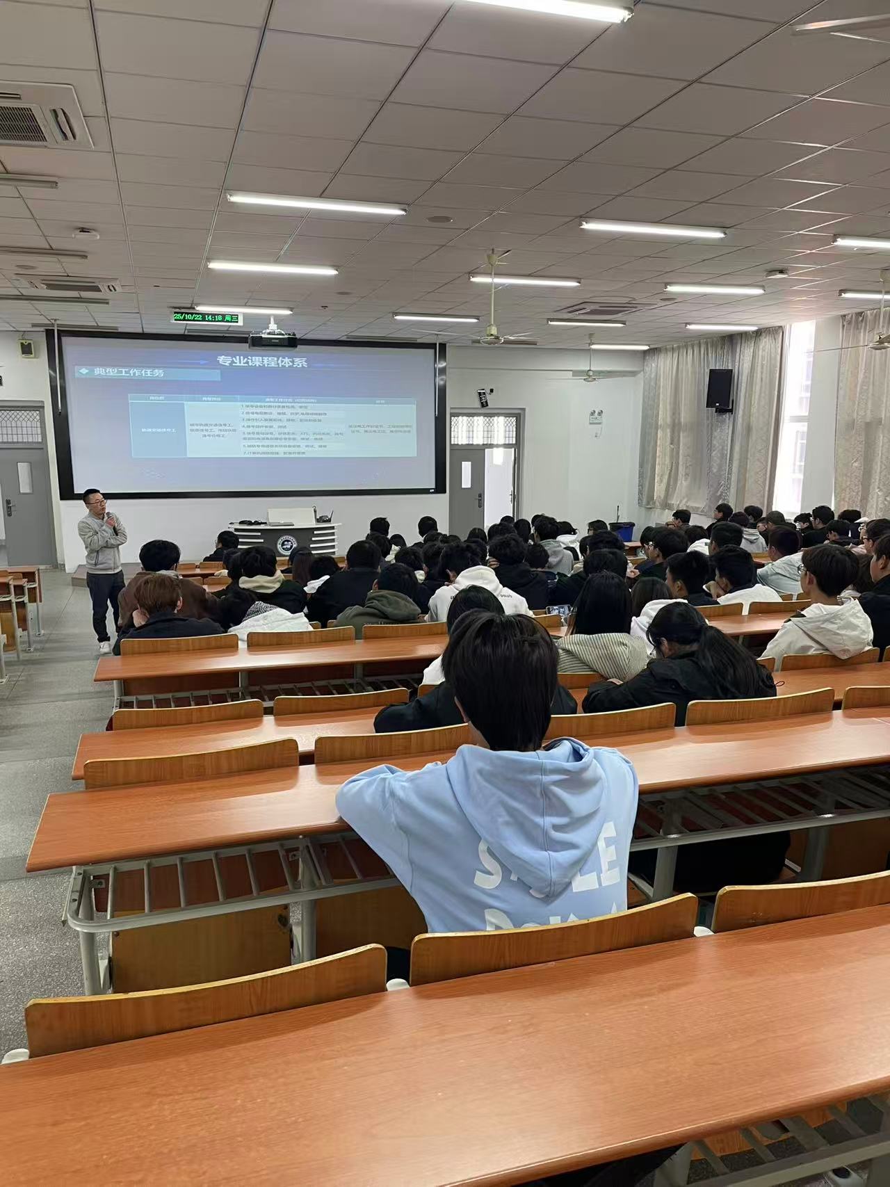 供用电技术专业精心组织了新生专业教育活动,为新生们开启专业学习的 “第一课”。本次活动由供用电技术专业主任张明瀚负责,分别为学生介绍了:一、专业基本情况。涵盖培养目标、课程体系与核心技能,让新生清晰了解 “学什么”;二、当前就业情况。结合行业趋势与企业需求,介绍对口岗位与就业竞争力;三、毕业生职业发展路径。通过往届案例展示不同阶段的成长方向,帮助新生树立长期规划意识。活动特别邀请了中国铁路上海局集团有限公司南京供电段的优秀校友刘辉作专题报告。刘辉以自身从校园到职场的成长经历为切入点,分享了职业初期的挑战、技能提升的方法与职业晋升的关键节点。他用生动的案例和实用的建议,为新生们精准指明了大学期间的学习重点与能力培养方向,让抽象的职业规划变得具体可落地。