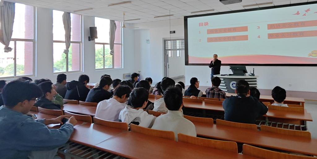 接下来,李志明围绕工作、生活、交通、法律等方面对学生进行了全面细致的实习安全教育,着重强调了实习期间要注重安全,不仅要关注人身安全,还要关注财产安全和交通安全。
