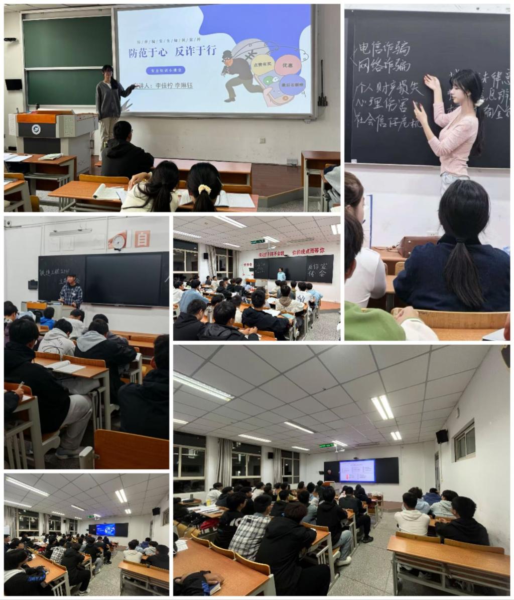 会上,各班结合实际案例,通过PPT讲解、视频播放、互动问答等形式,向同学们详细介绍了当前常见的诈骗类型和手段,包括网络刷单诈骗、虚假投资诈骗、冒充公检法诈骗等。同时,还特别分析了近期高校频繁出现的网络诈骗真实案例,帮助学生认识到诈骗行为的隐蔽性和危害性。通过交流,同学们纷纷表示,此次班会让他们对诈骗手段有了更清晰的认识,增强了防范意识和应对能力。