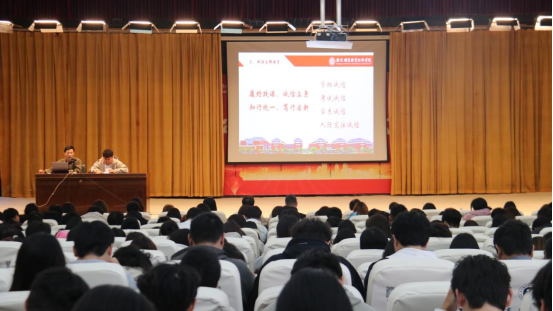 苏刚老师围绕 “诚信” 主题展开讲解,以学生手册为依据,从学术诚信、考试诚信、生活诚信三个维度,结合校园内的真实案例,阐述诚信对个人成长、学业发展及未来职业道路的重要性,呼吁新生自觉践行诚信准则,争做诚实守信的新时代大学生。